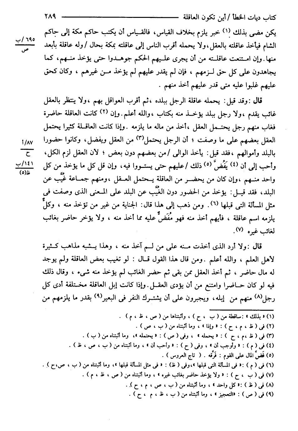يَكُنْ مَضَى خَبَرٌ يَلْزَمُ بِخِلاَفِ الْقِيَاسِ فَالْقِيَاسُ أَنْ يَكْتُبَ حَاكِمُ مَكَّةَ إلَى حَاكِمِ الشَّامِ فَيَأْخُذُ عَاقِلَتُهُ بِالْعَقْلِ وَلاَ يَحْمِلُهُ أَقْرَبُ النَّاسِ إلَى عَاقِلَتِهِ بِمَكَّةَ بِحَالٍ وَلَهُ عَاقِلَةٌ بِأَبْعَدَ مِنْهَا , وَإِنْ امْتَنَعَتْ عَاقِلَتُهُ مِنْ أَنْ يَجْرِيَ عَلَيْهِمْ الْحُكْمُ جُوهِدُوا حَتَّى يُؤْخَذَ مِنْهُمْ كَمَا يُجَاهِدُونِ عَلَى كُلِّ حَقٍّ لَزِمَهُمْ فَإِنْ لَمْ يَقْدِرْ عَلَيْهِمْ لَمْ يُؤْخَذْ مِنْ غَيْرِهِمْ وَكَانَ كَحَقٍّ عَلَيْهِمْ غَلَبُوا عَلَيْهِ مَتَى قَدَرَ عَلَيْهِمْ أَخَذَ مِنْهُمْ ( قَالَ ) وَقَدْ قِيلَ : يَحْمِلُهُ عَاقِلَةُ الرَّجُلِ بِبَلَدِهِ ثُمَّ أَقْرَبُ الْعَوَاقِلِ بِهِمْ وَلاَ يُنْتَظَرُ بِالْعَقْلِ غَائِبٌ يَقْدُمُ وَلاَ رَجُلٌ بِبَلَدٍ يُؤْخَذُ مِنْهُ بِكِتَابٍ - وَاَللَّهُ أَعْلَمُ - . وَإِنْ كَانَتْ الْعَاقِلَةُ حَاضِرَةً فَغَابَ مِنْهُمْ رَجُلٌ يَحْتَمِلُ الْعَقْلَ أَخَذَ مِنْ مَالِهِ مَا يَلْزَمُهُ وَإِذَا كَانَتْ الْعَاقِلَةُ كَثِيرًا يَحْتَمِلُ الْعَقْلَ بَعْضُهُمْ عَلَى مَا وَصَفْتُ أَنَّ الرَّجُلَ يَحْتَمِلُ مِنْ الْعَقْلِ وَيَفْضُلُ وَكَانُوا حُضُورًا بِالْبَلَدِ وَأَمْوَالُهُمْ فَقَدْ قِيلَ يَأْخُذُ الْوَالِي مِنْ بَعْضِهِمْ دُونَ بَعْضٍ ; لِأَنَّ الْعَقْلَ لَزِمَ الْكُلَّ وَأَحَبُّ إلَيَّ أَنْ يَفُضَّ ذَلِكَ عَلَيْهِمْ حَتَّى يَسْتَوُوا فِيهِ وَإِنْ قَلَّ كُلُّ مَا يُؤْخَذُ مِنْ كُلِّ وَاحِدٍ مِنْهُمْ وَإِنْ كَانَ مَنْ يَحْضُرُ مِنْ الْعَاقِلَةِ يَحْتَمِلُ الْعَقْلَ وَمِنْهُمْ جَمَاعَةٌ غُيَّبٌ عَنْ الْبَلَدِ فَقَدْ قِيلَ يُؤْخَذُ مِنْ الْحُضُورِ دُونَ الْغُيَّبِ عَنْ الْبَلَدِ عَلَى الْمَعْنَى الَّذِي وَصَفْتُ فِي مِثْلِ الْمَسْأَلَةِ الَّتِي قَبْلَهَا , وَمَنْ ذَهَبَ إلَى هَذَا قَالَ الْجِنَايَةُ مِنْ غَيْرِ مَنْ تُؤْخَذُ مِنْهُ وَكُلٌّ يَلْزَمُهُ اسْمُ عَاقِلَةٍ رَأْيُهُمْ أُخِذَ مِنْهُ فَهُوَ مُفْضٍ عَلَيْهِ مِمَّا أُخِذَ مِنْهُ وَلاَ يُؤْخَذُ حَاضِرٌ بِغَائِبٍ غَيْرِهِ ( قَالَ ) وَلاَ أَرُدُّ الَّذِي أَخَذْت مِنْهُ عَلَى مَنْ لَمْ آخُذْ مِنْهُ وَهَذَا يُشْبِهُ مَذَاهِبَ كَثِيرَةٍ لِأَهْلِ الْعِلْمِ - وَاَللَّهُ تَعَالَى أَعْلَمُ - وَمَنْ قَالَ هَذَا الْقَوْلَ قَالَ لَوْ تَغَيَّبَ بَعْضُ الْعَاقِلَةِ وَلَمْ يُوجَدْ لَهُ مَالٌ حَاضِرٌ ثُمَّ أُخِذَ الْعَقْلَ مِمَّنْ بَقِيَ ثُمَّ حَضَرَ الْغَائِبُ لَمْ يُؤْخَذْ مِنْهُ شَيْءٌ وَقِيلَ ذَلِكَ فِيهِ لَوْ كَانَ حَاضِرًا وَامْتَنَعَ مِنْ أَنْ يُؤَدِّيَ الْعَقْلَ وَإِذَا كَانَتْ إبِلُ الْعَاقِلَةِ مُخْتَلِفَةً أَدَّى كُلُّ رَجُلٍ مِنْهُمْ مِنْ إبِلِهِ وَيُجْبَرُونَ عَلَى أَنْ يَشْتَرِكَ النَّفَرُ فِي الْبَعِيرِ بِقَدْرِ مَا يَلْزَمُهُمْ مِنْ @