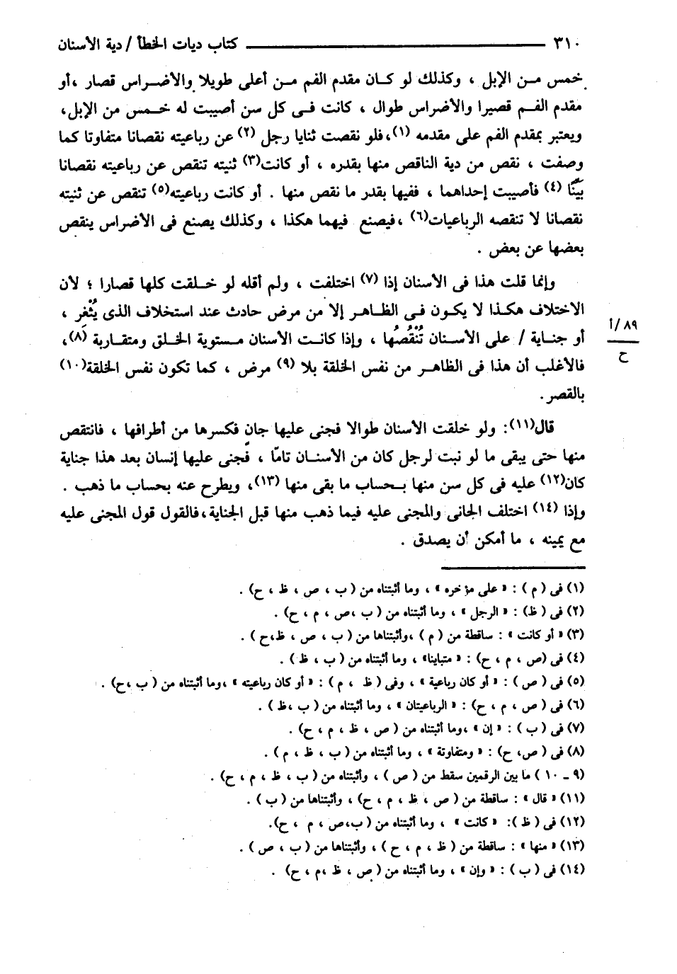 خَمْسٌ مِنْ الْإِبِلِ , وَكَذَلِكَ لَوْ كَانَ مُقَدَّمُ الْفَمِ مِنْ أَعْلَى طَوِيلاً وَالْأَضْرَاسُ قِصَارٌ أَوْ مُقَدَّمُ الْفَمِ قَصِيرًا وَالْأَضْرَاسُ طِوَالٌ كَانَتْ فِي كُلِّ سِنٍّ أُصِيبَتْ لَهُ خَمْسٌ مِنْ الْإِبِلِ وَيُعْتَبَرُ بِمُقَدَّمِ الْفَمِ عَلَى مُقَدَّمِهِ فَلَوْ نَقَصَتْ ثَنَايَا رَجُلٍ عَنْ رَبَاعِيَتِهِ نُقْصَانًا مُتَفَاوِتًا كَمَا وَصَفْت نَقَصَ مِنْ دِيَةِ النَّاقِصِ مِنْهَا بِقَدْرِهِ أَوْ كَانَتْ ثَنِيَّتُهُ تَنْقُصُ عَنْ رَبَاعِيَتِهِ نُقْصَانًا بَيِّنًا فَأُصِيبَتْ إحْدَاهُمَا فَفِيهَا بِقَدْرِ مَا نَقَصَ مِنْهَا أَوْ كَانَتْ رَبَاعِيَتُهُ تَنْقُصُ عَنْ ثَنِيَّتِهِ نُقْصَانًا لاَ تَنْقُصُهُ الرَّبَاعِيَاتُ فَيَصْنَعُ فِيهِمَا هَكَذَا , وَكَذَلِكَ يَصْنَعُ فِي الْأَضْرَاسِ يَنْقُصُ بَعْضُهَا عَنْ بَعْضٍ وَإِنَّمَا قُلْت هَذَا فِي الْأَسْنَانِ إنْ اخْتَلَفَتْ وَلَمْ أَقُلْهُ لَوْ خُلِقَتْ كُلُّهَا قِصَارًا ; لِأَنَّ الِاخْتِلاَفَ هَكَذَا لاَ يَكُونُ فِي الظَّاهِرِ إلَّا مِنْ مَرَضٍ حَادِثٍ عِنْدَ اسْتِخْلاَفِ الَّذِي يَثْغَرُ أَوْ جِنَايَةٍ عَلَى الْأَسْنَانِ تَنْقُصُهَا . وَإِذَا كَانَتْ الْأَسْنَانُ مُسْتَوِيَةَ الْخَلْقِ وَمُتَقَارِبَةً فَالْأَغْلَبُ أَنَّ هَذَا فِي الظَّاهِرِ مِنْ نَفْسِ الْخِلْقَةِ بِلاَ مَرَضٍ كَمَا تَكُونُ نَفْسُ الْخِلْقَةِ بِالْقِصَرِ ( قَالَ ) وَلَوْ خُلِقَتْ الْأَسْنَانُ طِوَالاً فَجَنَى عَلَيْهَا جَانٍ فَكَسَرَهَا مِنْ أَطْرَافِهَا فَانْتَقَصَ مِنْهَا حَتَّى يَبْقَى مَا لَوْ نَبَتَ لِرَجُلٍ كَانَ مِنْ الْأَسْنَانِ تَامًّا فَجَنَى عَلَيْهَا إنْسَانٌ بَعْدَ هَذَا جِنَايَةً كَانَ عَلَيْهِ فِي كُلِّ سِنٍّ مِنْهَا بِحِسَابِ مَا بَقِيَ مِنْهَا وَيُطْرَحُ عَنْهُ بِحِسَابِ مَا ذَهَبَ وَإِنْ اخْتَلَفَ الْجَانِي وَالْمَجْنِيُّ عَلَيْهِ فِيمَا ذَهَبَ مِنْهَا قَبْلَ الْجِنَايَةِ فَالْقَوْلُ قَوْلُ الْمَجْنِيِّ عَلَيْهِ مَعَ يَمِينِهِ مَا أَمْكَنَ أَنْ يَصْدُقَ . .@