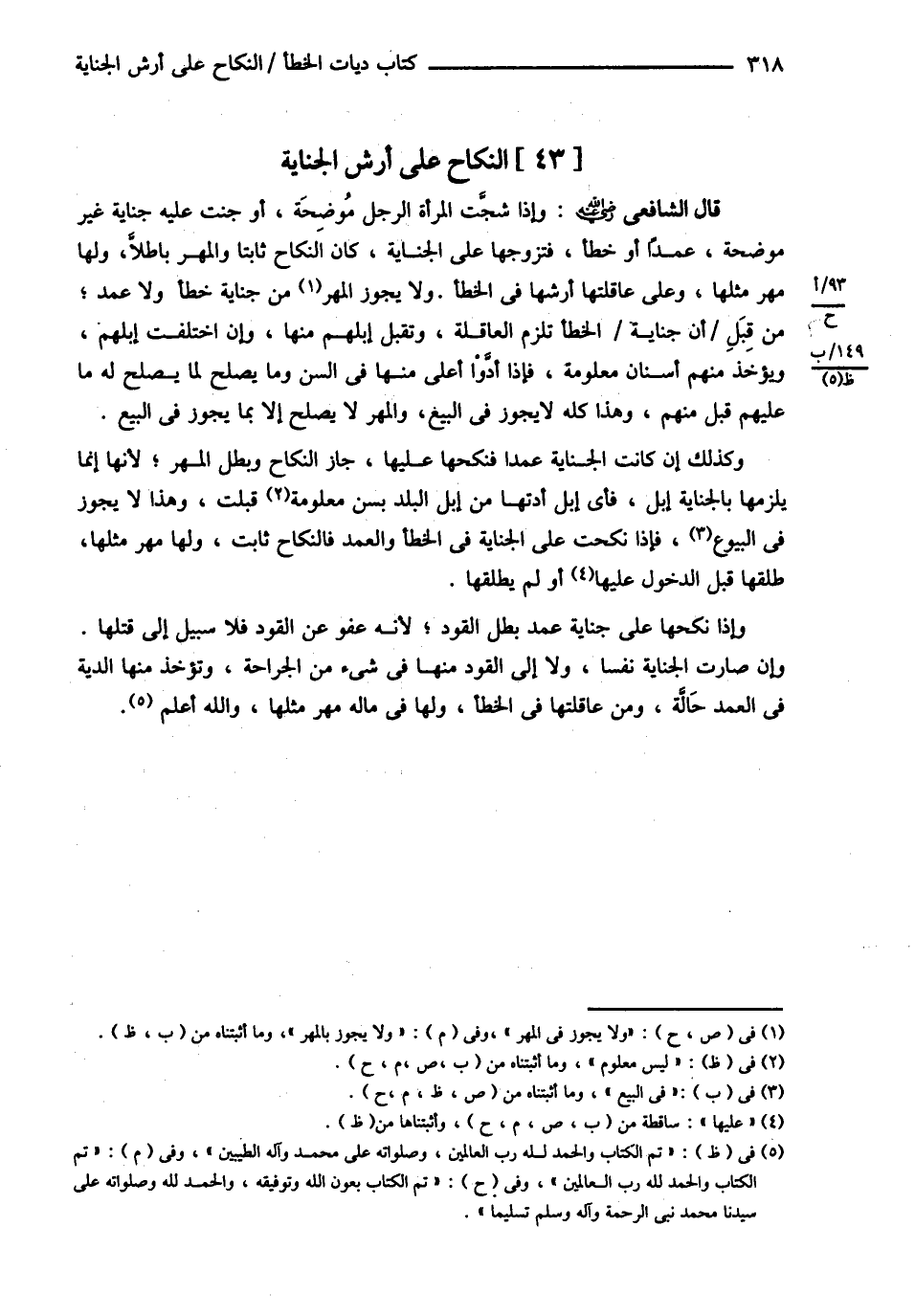 قَالَ الشَّافِعِيُّ : رحمه الله تعالى : وَإِذَا شَجَّتْ الْمَرْأَةُ الرَّجُلَ مُوضِحَةً أَوْ جَنَتْ عَلَيْهِ جِنَايَةً غَيْرَ مُوضِحَةٍ عَمْدًا أَوْ خَطَأً فَتَزَوَّجَهَا عَلَى الْجِنَايَةِ كَانَ النِّكَاحُ ثَابِتًا وَالْمَهْرُ بَاطِلاً وَلَهَا مَهْرُ مِثْلِهَا وَعَلَى عَاقِلَتِهَا أَرْشُهَا فِي الْخَطَأِ وَلاَ يَجُوزُ الْمَهْرُ مِنْ جِنَايَةٍ خَطَأٍ وَلاَ عَمْدٍ مِنْ قِبَلِ أَنَّ جِنَايَةَ الْخَطَأِ تَلْزَمُ الْعَاقِلَةَ وَتُقْبَلُ إبِلُهُمْ مِنْهَا وَإِنْ اخْتَلَفَتْ إبِلُهُمْ وَيُؤْخَذُ مِنْهُمْ أَسْنَانٌ مَعْلُومَةٌ , فَإِذَا أَدُّوا أَعْلَى مِنْهَا فِي السِّنِّ وَمَا يَصْلُحُ لِمَا يَصْلُحُ لَهُ مَا عَلَيْهِمْ قُبِلَ مِنْهُمْ وَهَذَا كُلُّهُ لاَ يَجُوزُ فِي الْبَيْعِ , وَالْمَهْرُ لاَ يَصْلُحُ إلَّا بِمَا يَجُوزُ فِي الْبَيْعِ , وَكَذَلِكَ إنْ كَانَتْ الْجِنَايَةُ عَمْدًا فَنَكَحَهَا عَلَيْهَا جَازَ النِّكَاحُ وَبَطَلَ الْمَهْرُ ; لِأَنَّهَا إنَّمَا يَلْزَمُهَا بِالْجِنَايَةِ إبِلٌ فَأَيُّ إبِلٍ أَدَّتْهَا مِنْ إبِلِ الْبَلَدِ بِسِنٍّ مَعْلُومَةٍ قُبِلَتْ وَهَذَا لاَ يَجُوزُ فِي الْبَيْعِ , فَإِذَا نَكَحَتْ عَلَى الْجِنَايَةِ فِي الْخَطَأِ وَالْعَمْدِ فَالنِّكَاحُ ثَابِتٌ وَلَهَا مَهْرُ مِثْلِهَا طَلَّقَهَا قَبْلَ الدُّخُولِ أَوْ لَمْ يُطَلِّقْهَا , وَإِذَا نَكَحَهَا عَلَى جِنَايَةِ عَمْدٍ بَطَلَ الْقَوَدُ ; لِأَنَّهُ عَفْوٌ عَنْ الْقَوَدِ فَلاَ سَبِيلَ إلَى قَتْلِهَا وَإِنْ صَارَتْ الْجِنَايَةُ نَفْسًا وَلاَ إلَى الْقَوَدِ مِنْهَا فِي شَيْءٍ مِنْ الْجِرَاحَةِ وَتُؤْخَذُ مِنْهَا الدِّيَةُ فِي الْعَمْدِ حَالَّةً وَمِنْ عَاقِلَتِهَا فِي الْخَطَأِ وَلَهَا فِي مَالِهِ مَهْرُ مِثْلِهَا . .والله اعلم@