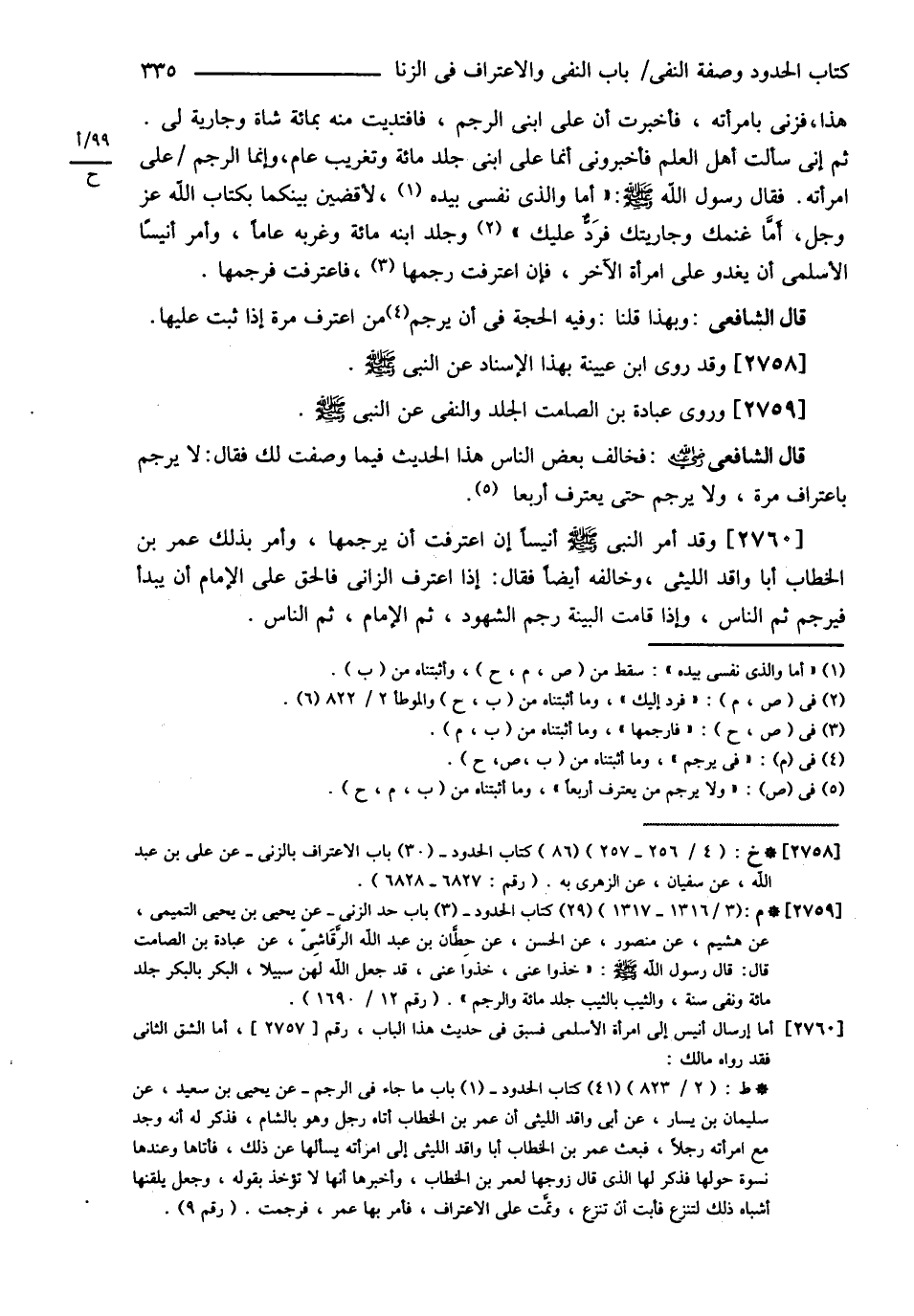 قَالَ الشَّافِعِيُّ: وَبِهَذَا قُلْنَا وَفِيهِ الْحُجَّةُ فِي أَنْ يُرْجَمَ مَنْ اعْتَرَفَ مَرَّةً إذَا ثَبَتَ عَلَيْهَا. وَقَدْ رَوَى ابْنُ عُيَيْنَةَ بِهَذَا الْإِسْنَادِ عَنْ النَّبِيِّ - صلى الله عليه وسلم -. وَرَوَى عُبَادَةُ بْنُ الصَّامِتِ الْجَلْدَ وَالنَّفْيَ عَنْ النَّبِيِّ - صلى الله عليه وسلم -