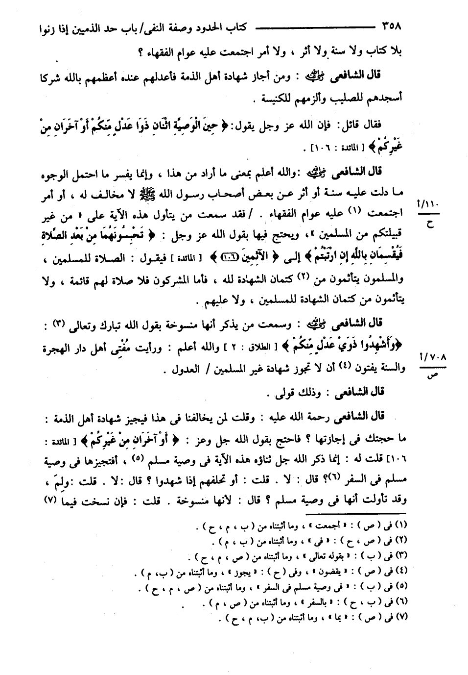 قَالَ الشَّافِعِيُّ : وَمَنْ أَجَازَ شَهَادَةَ أَهْلِ الذِّمَّةِ فَأَعْدَلُهُمْ عِنْدَهُ أَعْظَمُهُمْ بِاَللَّهِ شِرْكًا أَسْجَدُهُمْ لِلصَّلِيبِ وَأَلْزَمُهُمْ لِلْكَنِيسَةِ فَقَالَ قَائِلٌ : فَإِنَّ اللَّهَ عَزَّ وَجَلَّ يَقُولُ حِينَ الْوَصِيَّةِ : ? اثْنَانِ ذَوَا عَدْلٍ مِنْكُمْ أَوْ آخَرَانِ مِنْ غَيْرِكُمْ ?
