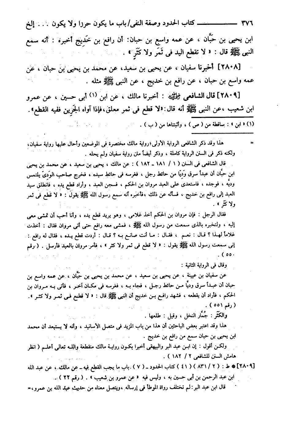 بْنِ يَحْيَى عَنْ عَمِّهِ وَاسِعِ بْنِ حِبَّانَ أَنَّ رَافِعَ بْنَ خَدِيجٍ أَخْبَرَهُ أَنَّهُ سَمِعَ النَّبِيَّ - صلى الله عليه وسلم - قَالَ : ? لاَ تُقْطَعُ الْيَدُ فِي ثَمَرٍ وَلاَ كَثَرٍ ? أَخْبَرَنَا سُفْيَانُ عَنْ يَحْيَى بْنِ سَعِيدٍ عَنْ مُحَمَّدِ بْنِ يَحْيَى بْنِ حِبَّانَ عَنْ عَمِّهِ وَاسِعِ بْنِ حِبَّانَ عَنْ رَافِعِ بْنِ خَدِيجٍ عَنْ النَّبِيِّ - صلى الله عليه وسلم - مِثْلُهُ