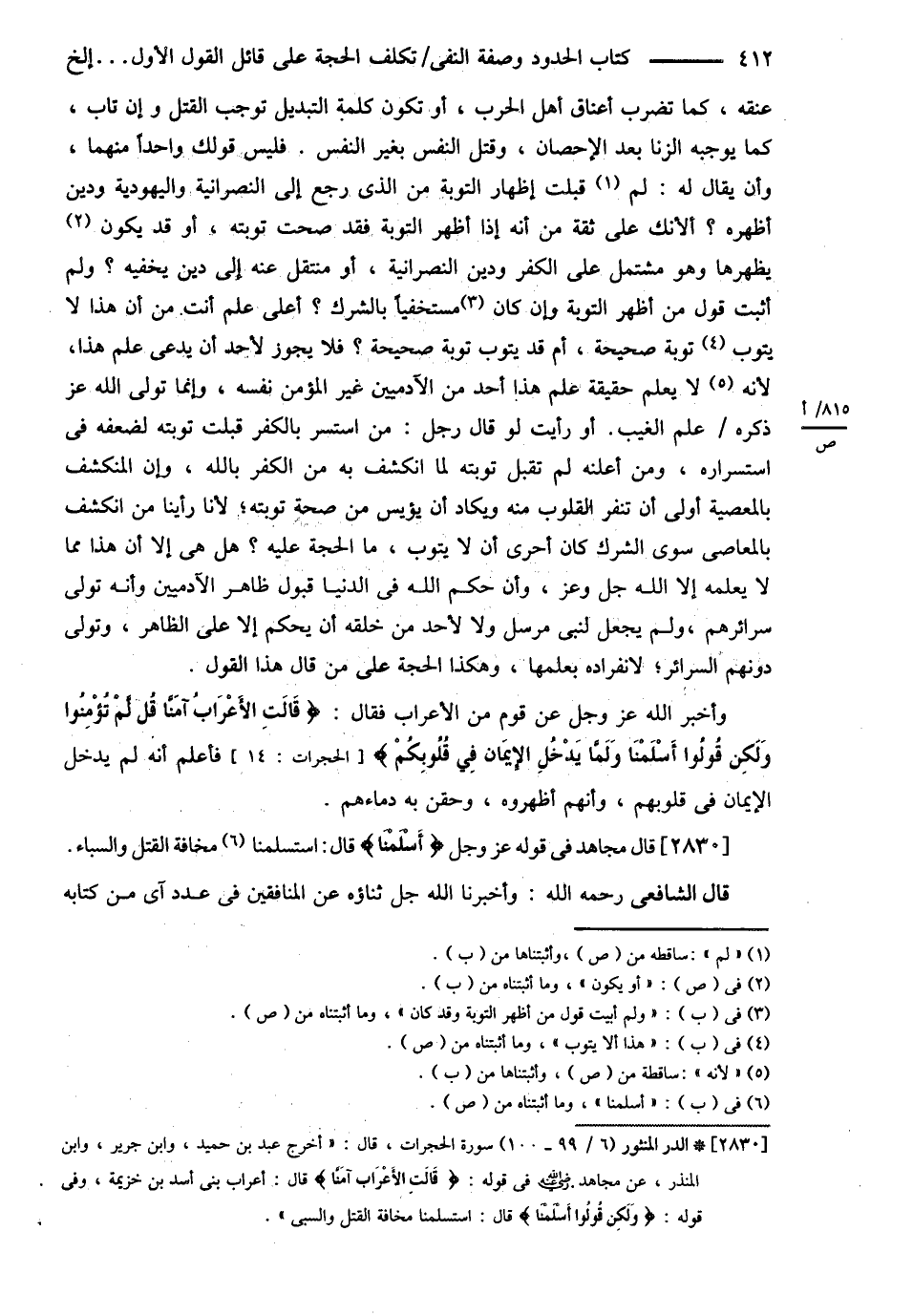 قَالَ الشَّافِعِيُّ : وَأَخْبَرَ اللَّهُ جَلَّ ثَنَاؤُهُ عَنْ الْمُنَافِقِينَ فِي عَدَدِ آيٍ مِنْ كِتَابِهِ @