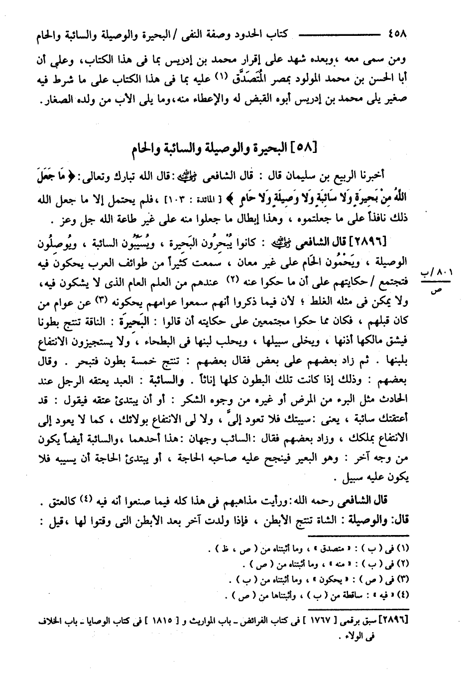 الْبَحِيرَةُ وَالْوَصِيلَةُ وَالسَّائِبَةُ وَالْحَامُ ( أَخْبَرَنَا الرَّبِيعُ بْنُ سُلَيْمَانَ ) قَالَ .
