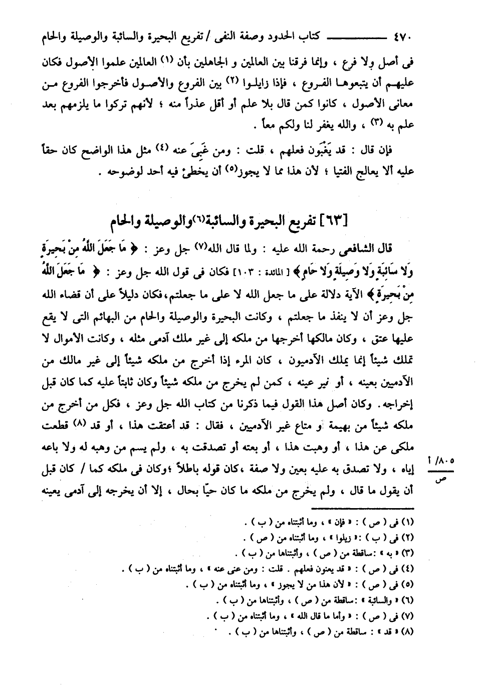 تَفْرِيعُ الْبَحِيرَةِ وَالسَّائِبَةِ وَالْوَصِيلَةِ وَالْحَامِ