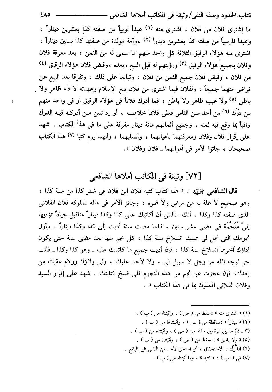 وَثِيقَةٌ فِي الْمَكَاتِب أَمْلاَهَا الشَّافِعِيُّ