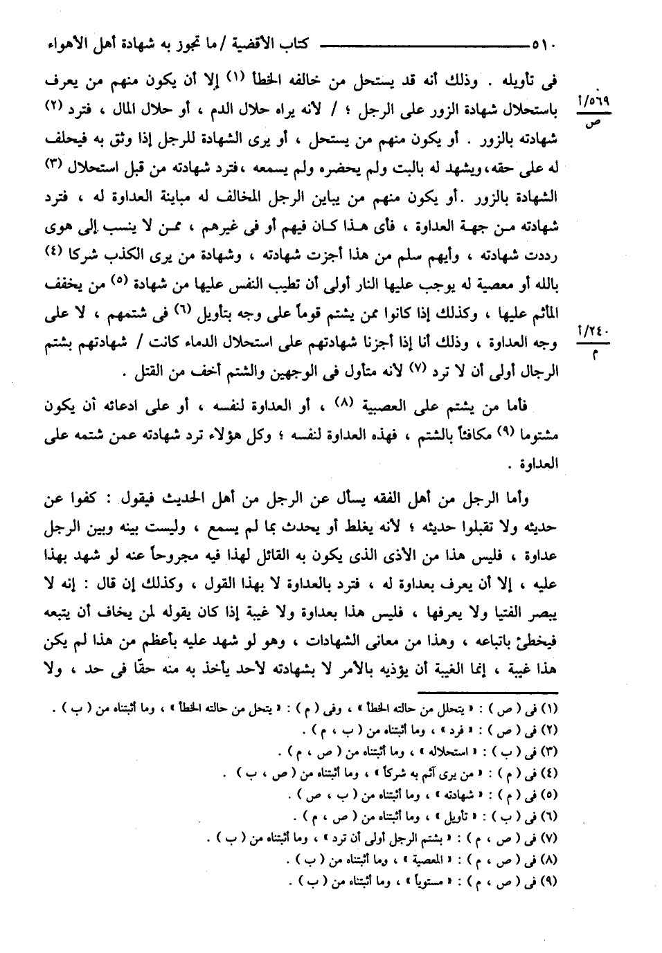 فِي تَأْوِيلِهِ وَذَلِكَ أَنَّهُ قَدْ يَسْتَحِلُّ مَنْ خَالَفَهُ الْخَطَأَ إلَّا أَنْ يَكُونَ مِنْهُمْ مَنْ يُعْرَفُ بِاسْتِحْلاَلِ شَهَادَةِ الزُّورِ عَلَى الرَّجُلِ لِأَنَّهُ يَرَاهُ حَلاَلَ الدَّمِ أَوْ حَلاَلَ الْمَالِ فَتُرَدُّ شَهَادَتُهُ بِالزُّورِ أَوْ يَكُونَ مِنْهُمْ مَنْ يَسْتَحِلُّ أَوْ يَرَى الشَّهَادَةَ لِلرَّجُلِ إذَا وَثِقَ بِهِ فَيَحْلِفُ لَهُ عَلَى حَقِّهِ وَيَشْهَدُ لَهُ بِالْبَتِّ وَلَمْ يَحْضُرْهُ وَلَمْ يَسْمَعْهُ فَتُرَدُّ شَهَادَتُهُ مِنْ قِبَلِ اسْتِحْلاَلِهِ الشَّهَادَةَ بِالزُّورِ أَوْ يَكُونَ مِنْهُمْ مَنْ يُبَايِنُ الرَّجُلَ الْمُخَالِفَ لَهُ مُبَايَنَةَ الْعَدَاوَةِ لَهُ فَتُرَدُّ شَهَادَتُهُ مِنْ جِهَةِ الْعَدَاوَةِ فَأَيُّ هَذَا كَانَ فِيهِمْ أَوْ فِي غَيْرِهِمْ مِمَّنْ لاَ يُنْسَبُ إلَى هَوًى رَدَدْت شَهَادَتَهُ وَأَيُّهُمْ سَلِمَ مِنْ هَذَا أَجَزْت شَهَادَتَهُ وَشَهَادَةَ مَنْ يَرَى الْكَذِبَ شِرْكًا بِاَللَّهِ أَوْ مَعْصِيَةً لَهُ يُوجِبُ عَلَيْهَا النَّارَ أَوْلَى أَنْ تَطِيبَ النَّفْسُ عَلَيْهَا مِنْ شَهَادَةِ مَنْ يُخَفِّفُ الْمَأْثَمَ عَلَيْهَا . وَكَذَلِكَ إذَا كَانُوا مِمَّا يَشْتُمُ قَوْمًا عَلَى وَجْهِ تَأْوِيلٍ فِي شَتْمِهِمْ لاَ عَلَى وَجْهِ الْعَدَاوَةِ وَذَلِكَ أَنَّا إذَا أَجَزْنَا شَهَادَتَهُمْ عَلَى اسْتِحْلاَلِ الدِّمَاءِ كَانَتْ شَهَادَتُهُمْ بِشَتْمِ الرِّجَالِ أَوْلَى أَنْ لاَ تُرَدَّ لِأَنَّهُ مُتَأَوِّلٌ فِي الْوَجْهَيْنِ وَالشَّتْمُ أَخَفُّ مِنْ الْقَتْلِ فَأَمَّا مَنْ يَشْتُمُ عَلَى الْعَصَبِيَّةِ أَوْ الْعَدَاوَةِ لِنَفْسِهِ أَوْ عَلَى ادِّعَائِهِ أَنْ يَكُونَ مَشْتُومًا مُكَافِئًا بِالشَّتْمِ فَهَذِهِ الْعَدَاوَةُ لِنَفْسِهِ وَكُلُّ هَؤُلاَءِ تُرَدُّ شَهَادَتُهُ عَمَّنْ شَتَمَهُ عَلَى الْعَدَاوَةِ . وَأَمَّا الرَّجُلُ مِنْ أَهْلِ الْفِقْهِ يَسْأَلُ عَنْ الرَّجُلِ مِنْ أَهْلِ الْحَدِيثِ فَيَقُولُ كُفُّوا عَنْ حَدِيثِهِ وَلاَ تَقْبَلُوا حَدِيثَهُ لِأَنَّهُ يَغْلَطُ أَوْ يُحَدِّثُ بِمَا لَمْ يَسْمَعْ , وَلَيْسَتْ بَيْنَهُ وَبَيْنَ الرَّجُلِ عَدَاوَةٌ فَلَيْسَ هَذَا مِنْ الْأَذَى الَّذِي يَكُونُ بِهِ الْقَائِلُ لِهَذَا فِيهِ مَجْرُوحًا عَنْهُ لَوْ شَهِدَ بِهَذَا عَلَيْهِ إلَّا أَنْ يُعْرَفَ بِعَدَاوَةٍ لَهُ فَتُرَدَّ بِالْعَدَاوَةِ لاَ بِهَذَا الْقَوْلِ , وَكَذَلِكَ إنْ قَالَ إنَّهُ لاَ يُبْصِرُ الْفُتْيَا وَلاَ يَعْرِفُهَا فَلَيْسَ هَذَا بِعَدَاوَةٍ وَلاَ غِيبَةٍ إذَا كَانَ يَقُولُهُ لِمَنْ يَخَافُ أَنْ يَتَّبِعَهُ فَيُخْطِئَ بِاتِّبَاعِهِ وَهَذَا مِنْ مَعَانِي الشَّهَادَاتِ وَهُوَ لَوْ شَهِدَ عَلَيْهِ بِأَعْظَمَ مِنْ هَذَا لَمْ يَكُنْ هَذَا غِيبَةٌ إنَّمَا الْغِيبَةُ أَنْ يُؤْذِيَهُ بِالْأَمْرِ لاَ بِشَهَادَتِهِ لِأَحَدٍ يَأْخُذُ بِهِ مِنْهُ حَقًّا فِي حَدٍّ وَلاَ @