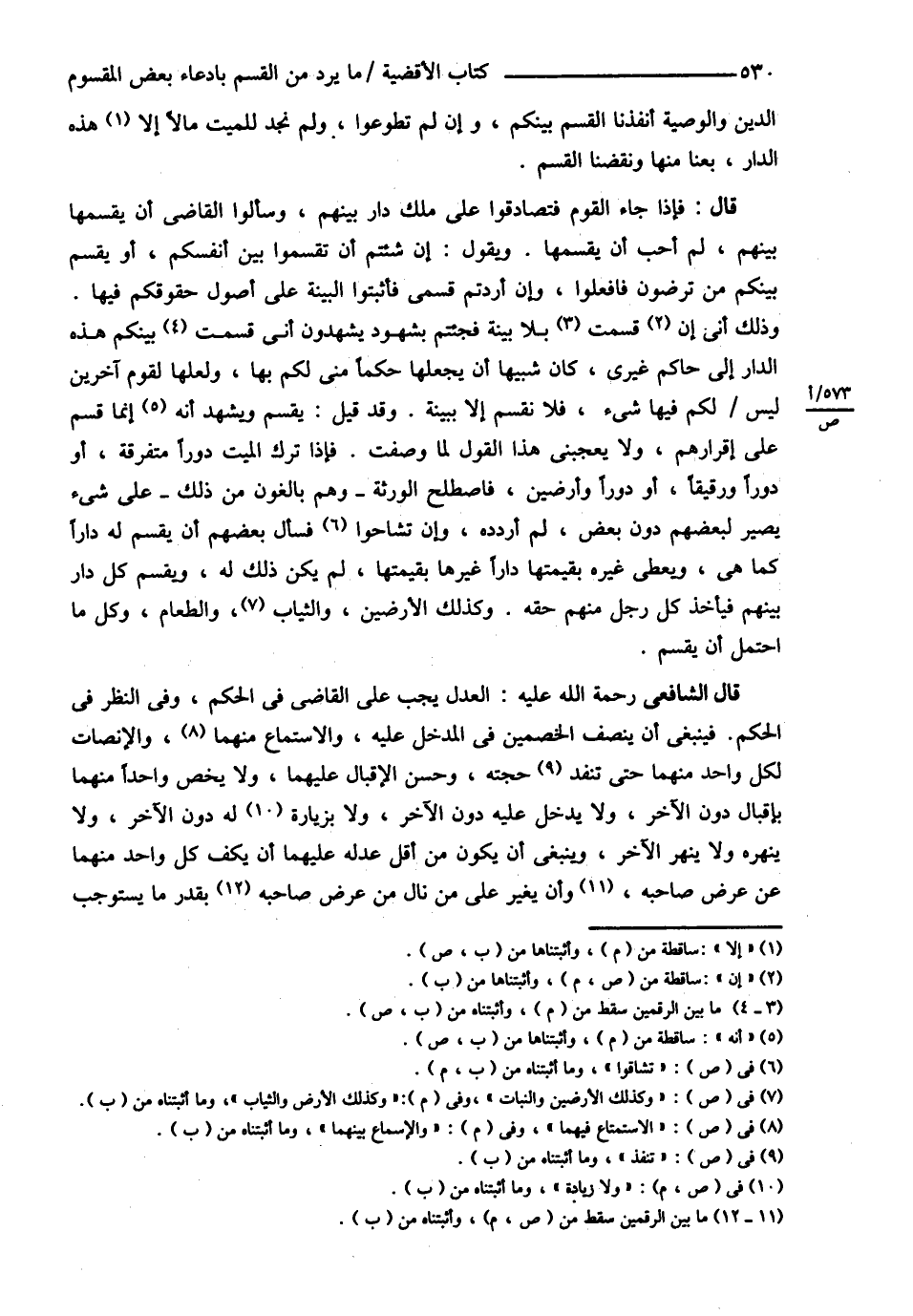 ( قَالَ ) فَإِذَا جَاءَ الْقَوْمُ فَتَصَادَقُوا عَلَى مِلْكِ دَارٍ بَيْنَهُمْ , وَسَأَلُوا الْقَاضِيَ أَنْ يَقْسِمَهَا بَيْنَهُمْ لَمْ أُحِبَّ أَنْ يَقْسِمَهَا , وَيَقُولُ إنْ شِئْتُمْ أَنْ تَقْسِمُوا بَيْنَ أَنْفُسِكُمْ أَوْ يَقْسِمَ بَيْنَكُمْ مَنْ تَرْضَوْنَ فَافْعَلُوا , وَإِنْ أَرَدْتُمْ قَسْمِي فَأَثْبِتُوا الْبَيِّنَةَ عَلَى أُصُولِ حُقُوقِكُمْ فِيهَا , وَذَلِكَ أَنِّي إنْ قَسَمْت بِلاَ بَيِّنَةٍ فَجِئْتُمْ بِشُهُودٍ يَشْهَدُونَ أَنِّي قَسَمْت بَيْنَكُمْ هَذِهِ الدَّارَ إلَى حَاكِمٍ غَيْرِي كَانَ شَبِيهًا أَنْ يَجْعَلَهَا حُكْمًا مِنِّي لَكُمْ بِهَا , وَلَعَلَّهَا لِقَوْمٍ آخَرِينَ لَيْسَ لَكُمْ فِيهَا شَيْءٌ فَلاَ نَقْسِمُ إلَّا بِبَيِّنَةٍ , وَقَدْ قِيلَ يَقْسِمُ , وَيَشْهَدُ أَنَّهُ إنَّمَا قَسَمَ عَلَى إقْرَارِهِمْ , وَلاَ يُعْجِبُنِي هَذَا الْقَوْلُ لِمَا وَصَفْت فَإِذَا تَرَكَ الْمَيِّتُ دُورًا مُتَفَرِّقَةً أَوْ دُورًا , وَرَقِيقًا أَوْ دُورًا , وَأَرَضِينَ فَاصْطَلَحَ الْوَرَثَةُ , وَهُمْ بَالِغُونَ مِنْ ذَلِكَ عَلَى شَيْءٍ يَصِيرُ لِبَعْضِهِمْ دُونَ بَعْضٍ لَمْ أَرْدُدْهُ , وَإِنْ تَشَاحُّوا فَسَأَلَ بَعْضُهُمْ أَنْ يَقْسِمَ لَهُ دَارًا كَمَا هِيَ , وَيُعْطِيَ غَيْرَهُ بِقِيمَتِهَا دَارًا غَيْرَهَا بِقِيمَتِهَا لَمْ يَكُنْ ذَلِكَ لَهُ , وَيَقْسِمُ كُلَّ دَارٍ بَيْنَهُمْ فَيَأْخُذُ كُلُّ رَجُلٍ مِنْهُمْ حَقَّهُ , وَكَذَلِكَ الْأَرَضِينَ , وَالثِّيَابَ , وَالطَّعَامَ , وَكُلُّ مَا احْتَمَلَ أَنْ يُقْسَمَ