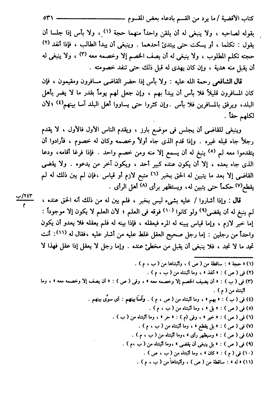قَالَ الشَّافِعِيُّ : رحمه الله , وَلاَ بَأْسَ إذَا حَضَرَ الْقَاضِيَ مُسَافِرُونَ وَمُقِيمُونَ فَإِنْ كَانَ الْمُسَافِرُونَ قَلِيلاً فَلاَ بَأْسَ أَنْ يَبْدَأَ بِهِمْ , وَإِنْ جَعَلَ لَهُمْ يَوْمًا بِقَدْرِ مَا لاَ يَضُرُّ بِأَهْلِ الْبَلَدِ , وَيَرْفُقُ بِالْمُسَافِرِينَ فَلاَ بَأْسَ , وَإِنْ كَثُرُوا حَتَّى يُسَاوُوا أَهْلَ الْبَلَدِ أُسًّا بِهِمْ , لِأَنَّ لِكُلِّهِمْ حَقًّا