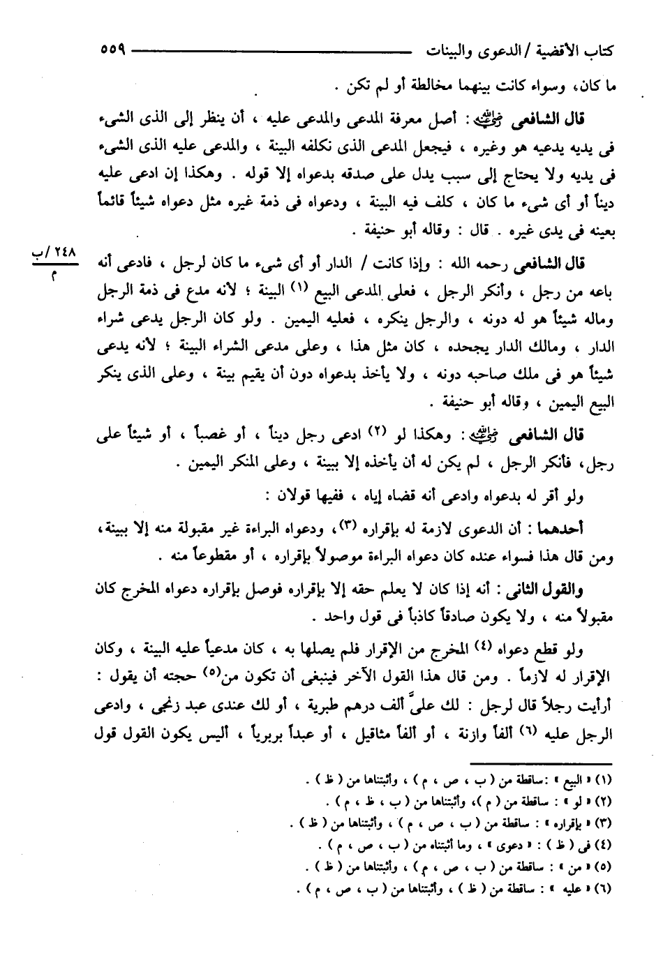 قَالَ الشَّافِعِيُّ : رحمه الله تعالى أَصْلُ مَعْرِفَةِ الْمُدَّعِي وَالْمُدَّعَى عَلَيْهِ أَنْ يُنْظَرَ إلَى الَّذِي الشَّيْءُ فِي يَدَيْهِ يَدَّعِيهِ هُوَ وَغَيْرُهُ فَيُجْعَلُ الْمُدَّعِيَ الَّذِي نُكَلِّفُهُ الْبَيِّنَةَ , وَالْمُدَّعَى عَلَيْهِ الَّذِي الشَّيْءُ فِي يَدَيْهِ , وَلاَ يُحْتَاجُ إلَى سَبَبٍ يَدُلُّ عَلَى صِدْقِهِ بِدَعْوَاهُ إلَّا قَوْلَهُ , وَهَكَذَا إنْ ادَّعَى عَلَيْهِ دَيْنًا أَوْ أَيَّ شَيْءٍ مَا كَانَ كُلِّفَ فِيهِ الْبَيِّنَةَ وَدَعْوَاهُ فِي ذِمَّةِ غَيْرِهِ مِثْلُ دَعْوَاهُ شَيْئًا قَائِمًا بِعَيْنِهِ فِي يَدَيْ غَيْرِهِ قَالَ , وَقَالَهُ أَبُو حَنِيفَةَ رضي الله تعالى عنه .