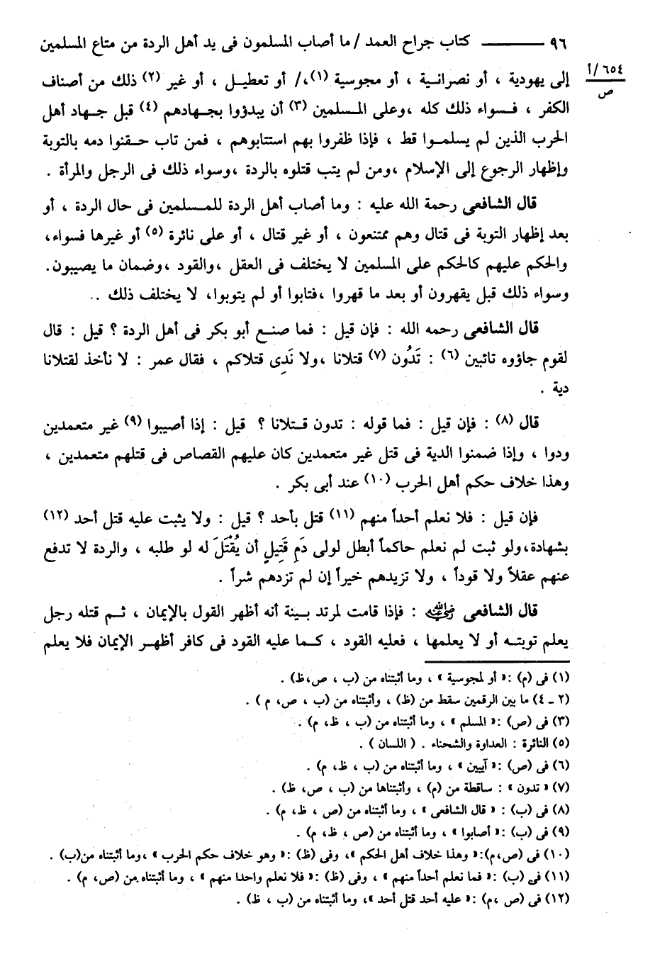 قَالَ الشَّافِعِيُّ : فَإِنْ قِيلَ : فَمَا صَنَعَ أَبُو بَكْرٍ فِي أَهْلِ الرِّدَّةِ ؟ قِيلَ : قَالَ لِقَوْمٍ جَاءُوهُ تَائِبِينَ تَدُونَ قَتْلاَنَا وَلاَ نَدِي قَتْلاَكُمْ فَقَالَ عُمَرُ لاَ نَأْخُذُ لِقَتْلاَنَا دِيَةً .
