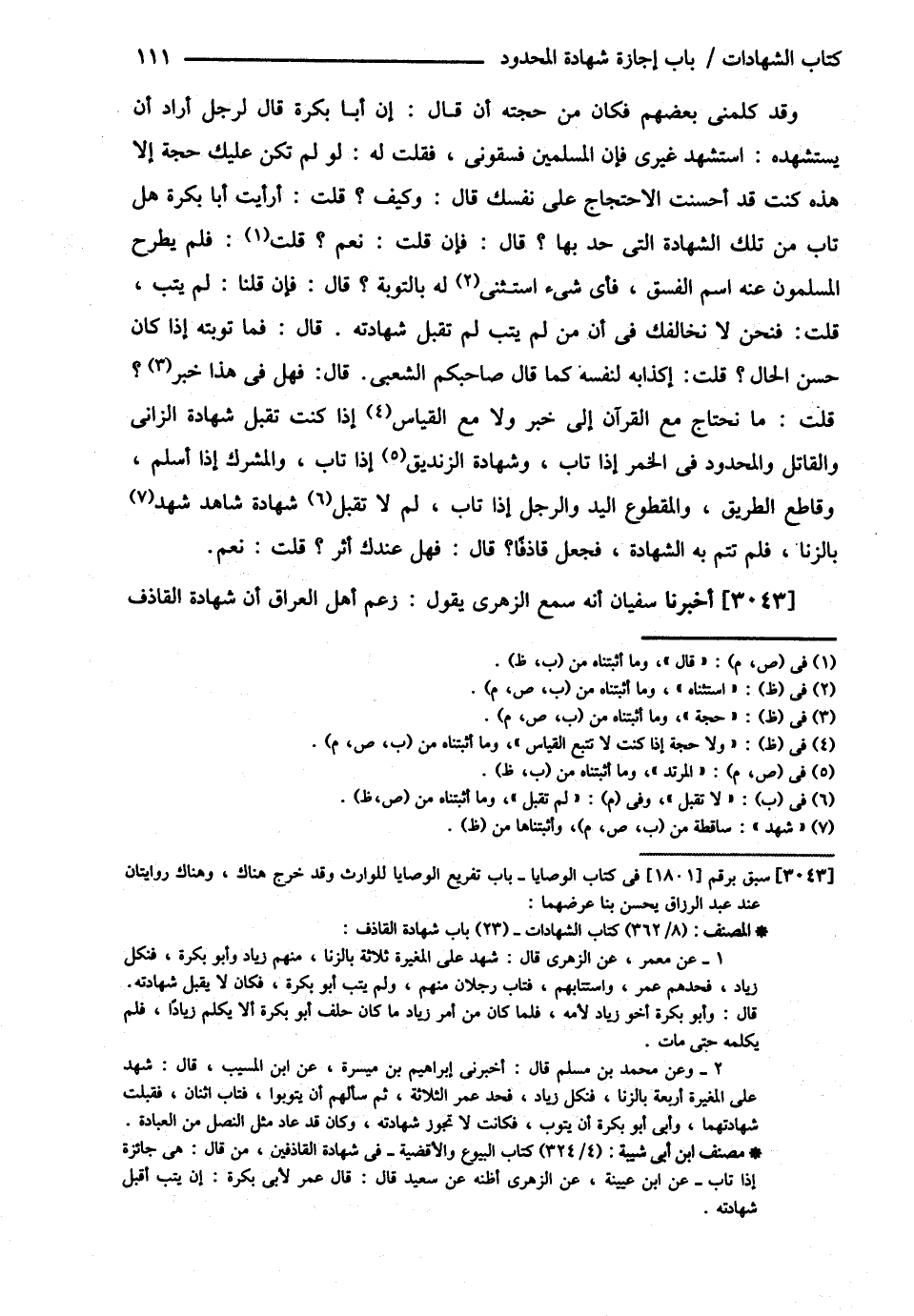 وَقَدْ كَلَّمَنِي بَعْضُهُمْ فَكَانَ مِنْ حُجَّتِهِ أَنْ قَالَ إنَّ أَبَا بَكْرَةَ قَالَ لِرَجُلٍ أَرَادَ أَنْ يَسْتَشْهِدَهُ اسْتَشْهِدْ غَيْرِي فَإِنَّ الْمُسْلِمِينَ فَسَّقُونِي فَقُلْت لَهُ لَوْ لَمْ تَكُنْ عَلَيْك حُجَّةٌ إلَّا هَذِهِ كُنْت قَدْ أَحْسَنْت الِاحْتِجَاجَ عَلَى نَفْسِك قَالَ وَكَيْفَ ؟ قُلْت أَرَأَيْت أَبَا بَكْرَةَ هَلْ تَابَ مِنْ تِلْكَ الشَّهَادَةِ الَّتِي حُدَّ بِهَا قَالَ فَإِنْ قُلْت نَعَمْ ؟ قُلْت فَلَمْ يَطْرَحْ الْمُسْلِمُونَ عَنْهُ اسْمَ الْفِسْقِ , فَأَيُّ شَيْءٍ اسْتَثْنَى لَهُ بِالتَّوْبَةِ ؟ قَالَ فَإِنْ قُلْنَا لَمْ يَتُبْ قُلْت فَنَحْنُ لاَ نُخَالِفُك فِي أَنَّ مَنْ لَمْ يَتُبْ لَمْ تُقْبَلْ شَهَادَتُهُ قَالَ فَمَا تَوْبَتُهُ إذَا كَانَ حَسَنَ الْحَالِ قُلْت إكْذَابُهُ لِنَفْسِهِ كَمَا قَالَ صَاحِبُكُمْ الشَّعْبِيُّ قَالَ فَهَلْ فِي هَذَا خَبْرٌ ؟ قُلْت مَا نَحْتَاجُ مَعَ الْقُرْآنِ إلَى خَبْرٍ وَلاَ مَعَ الْقِيَاسِ إذَا كُنْت تَقْبَلُ شَهَادَةَ الزَّانِي , وَالْقَاتِلِ , وَالْمَحْدُودِ فِي الْخَمْرِ إذَا تَابَ وَشَهَادَةَ الزِّنْدِيقِ إذَا تَابَ , وَالْمُشْرِكِ إذَا أَسْلَمَ وَقَاطِعِ الطَّرِيقِ , وَالْمَقْطُوعِ الْيَدِ وَالرِّجْلِ إذَا تَابَ لاَ تَقْبَلُ شَهَادَةُ شَاهِدٍ بِالزِّنَا فَلَمْ تَتِمَّ بِهِ الشَّهَادَةُ فَجُعِلَ قَاذِفًا قَالَ فَهَلْ عِنْدَك أَثَرٌ ؟ قُلْت نَعَمْ أَخْبَرَنَا سُفْيَانُ أَنَّهُ سَمِعَ الزُّهْرِيَّ يَقُولُ زَعَمَ أَهْلُ الْعِرَاقِ أَنَّ شَهَادَةَ الْقَاذِفِ@