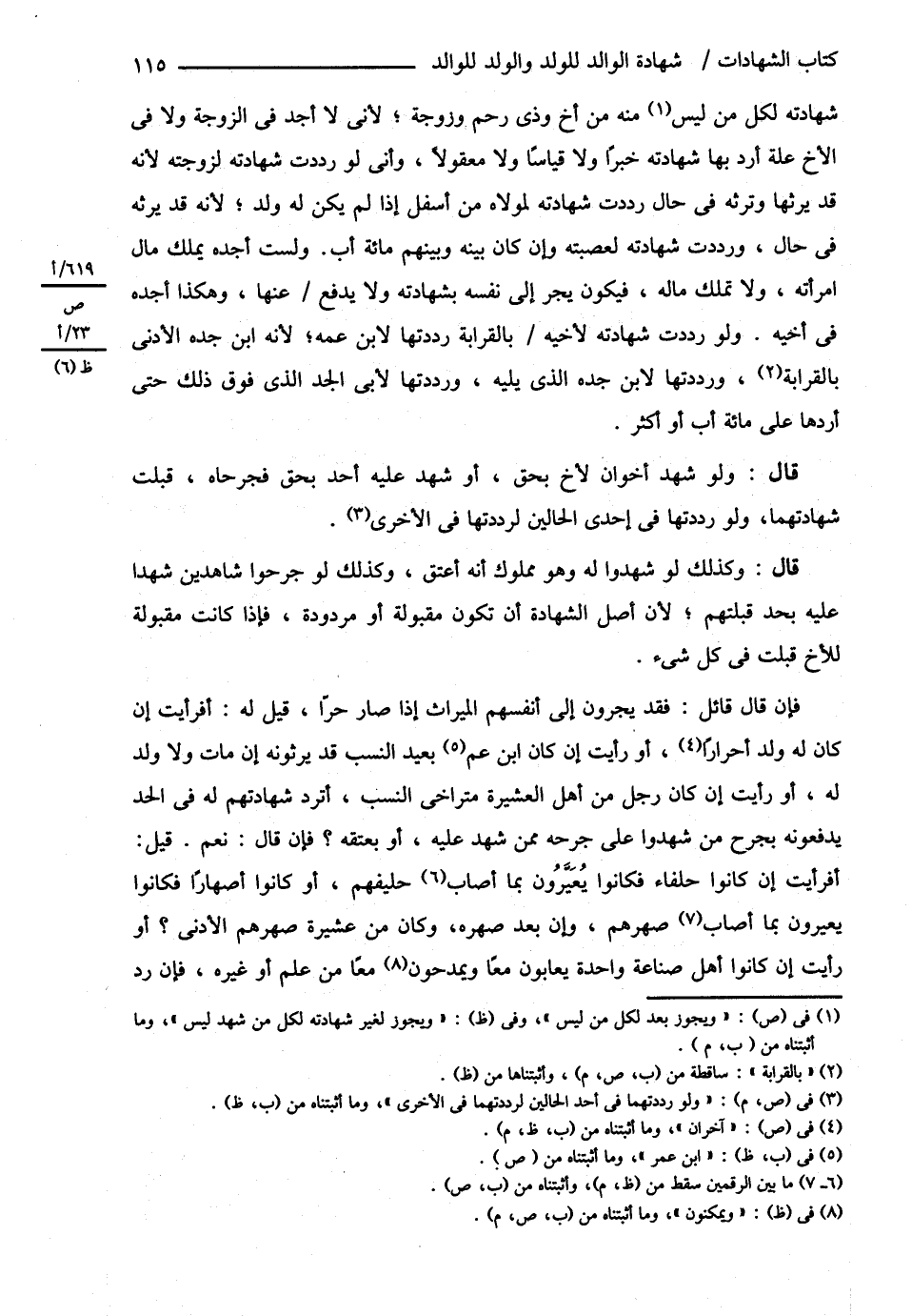 شَهَادَتِهِ لِكُلِّ مَنْ لَيْسَ مِنْهُ مِنْ أَخٍ وَذِي رَحِمٍ وَزَوْجَةٍ لِأَنِّي لاَ أَجِدُ فِي الزَّوْجَةِ وَلاَ فِي الْأَخِ عِلَّةً أَرُدُّ بِهَا شَهَادَتَهُ خَبَرًا وَلاَ قِيَاسًا وَلاَ مَعْقُولاً وَإِنِّي لَوْ رَدَدْت شَهَادَتَهُ لِزَوْجَتِهِ ; لِأَنَّهُ قَدْ يَرِثُهَا وَتَرِثُهُ فِي حَالٍ رَدَدْت شَهَادَتَهُ لِمَوْلاَهُ مِنْ أَسْفَلِ إذَا لَمْ يَكُنْ لَهُ وَلَدٌ ; لِأَنَّهُ قَدْ يَرِثُهُ فِي حَالٍ وَرَدَدْت شَهَادَتَهُ لِعَصَبَتِهِ وَإِنْ كَانَ بَيْنَهُ وَبَيْنَهُمْ مِائَةُ أَبٍ وَلَسْت أَجِدُهُ يَمْلِكُ مَالَ امْرَأَتِهِ وَلاَ تَمْلِكُ مَالَهُ فَيَكُونُ يَجُرُّ إلَى نَفْسِهِ بِشَهَادَتِهِ وَلاَ يَدْفَعُ عَنْهَا وَهَكَذَا أَجِدُهُ فِي أَخِيهِ , وَلَوْ رَدَدْت شَهَادَتَهُ لِأَخِيهِ بِالْقَرَابَةِ رَدَدْتهَا لِابْنِ عَمِّهِ ; لِأَنَّهُ ابْنُ جَدِّهِ الْأَدْنَى وَرَدَدْتهَا لِابْنِ جَدِّهِ الَّذِي يَلِيه وَرَدَدْتهَا لِأَبِي الْجَدِّ الَّذِي فَوْقَ ذَلِكَ حَتَّى أَرُدَّهَا عَلَى مِائَةِ أَبٍ , أَوْ أَكْثَرَ قَالَ , وَلَوْ شَهِدَ أَخَوَانِ لِأَخٍ بِحَقٍّ , أَوْ شَهِدَ عَلَيْهِ أَحَدٌ بِحَقٍّ فَجَرَّحَاهُ قَبِلْتُ شَهَادَتَهُمَا , وَلَوْ رَدَدْتهَا فِي إحْدَى الْحَالَيْنِ لَرَدَدْتُهَا فِي الْأُخْرَى ( قَالَ ) : وَكَذَلِكَ لَوْ شَهِدُوا لَهُ وَهُوَ مَمْلُوكٌ أَنَّهُ أُعْتِقَ , وَكَذَلِكَ لَوْ جَرَحُوا شَاهِدَيْنِ شَهِدَا عَلَيْهِ بِحَدٍّ قَبِلْتُ شَهَادَتُهُمَا ; لِأَنَّ أَصْلَ الشَّهَادَةِ أَنْ تَكُونَ مَقْبُولَةً , أَوْ مَرْدُودَةً فَإِذَا كَانَتْ مَقْبُولَةً لِلْأَخِ قُبِلَتْ فِي كُلِّ شَيْءٍ فَإِنْ قَالَ قَائِلٌ فَقَدْ يَجُرُّونَ إلَى أَنْفُسِهِمْ الْمِيرَاثَ إذَا صَارَ حُرًّا قِيلَ لَهُ : أَفَرَأَيْتَ إنْ كَانَ لَهُ وَلَدٌ أَحْرَارٌ , أَوْ رَأَيْتَ إنْ كَانَ ابْنُ عَمٍّ بَعِيدُ النَّسَبِ قَدْ يَرِثُونَهُ إنْ مَاتَ وَلاَ وَلَدَ لَهُ أَوَرَأَيْتَ إنْ كَانَ رَجُلٌ مِنْ أَهْلِ الْعَشِيرَةِ مُتَرَاخِيَ النَّسَبِ أَتَرُدُّ شَهَادَتَهُمْ لَهُ فِي الْحَدِّ يَدْفَعُونَهُ بِجُرْحِ مَنْ شَهِدُوا عَلَى جُرْحِهِ مِمَّنْ شَهِدَ عَلَيْهِ , أَوْ بِعِتْقِهِ فَإِنْ قَالَ : نَعَمْ , قِيلَ : أَفَرَأَيْت إنْ كَانُوا حُلَفَاءَ فَكَانُوا يُعَيَّرُونَ بِمَا أَصَابَ حَلِيفَهُمْ , أَوْ كَانُوا أَصْهَارًا فَكَانُوا يُعَيَّرُونَ بِمَا أَصَابَ صِهْرَهُمْ وَإِنْ بَعُدَ صِهْرُهُ , وَكَانَ مِنْ عَشِيرَةِ صِهْرِهِمْ الْأَدْنَى , أَوْ رَأَيْت إنْ كَانُوا أَهْلَ صِنَاعَةٍ وَاحِدَةٍ يُعَابُونَ مَعًا وَيُمْدَحُونَ مَعًا مِنْ عِلْمٍ , أَوْ غَيْرِهِ فَإِنْ رَدَّ@