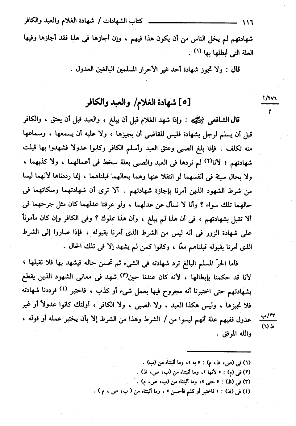 شَهَادَةُ الْغُلاَمِ وَالْعَبْدِ وَالْكَافِرِ
