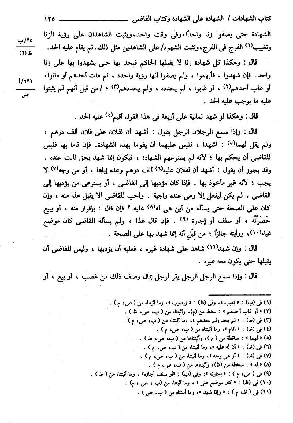 الشَّهَادَةُ حَتَّى يَصِفُوا زِنًا وَاحِدًا وَفِي وَقْتٍ وَاحِدٍ وَيَثْبُتَ الشَّاهِدَانِ عَلَى رُؤْيَةِ الزِّنَا وَتَغَيُّبِ الْفَرْجِ فِي الْفَرْجِ وَتَثْبُتَ الشُّهُودُ عَلَى الشَّاهِدَيْنِ مِثْلَ ذَلِكَ , ثُمَّ يُقَامُ عَلَيْهِ الْحَدُّ ( قَالَ ) : وَهَكَذَا كُلُّ شَهَادَةِ زِنًا لاَ يَقْبَلُهَا الْحَاكِمُ فَيَحُدُّ بِهَا حَتَّى يَشْهَدُوا بِهَا عَلَى زِنًا وَاحِدٍ فَإِنْ شَهِدُوا , فَأَبْهَمُوا وَلَمْ يَصِفُوا أَنَّهَا رُؤْيَةٌ وَاحِدَةٌ , ثُمَّ مَاتَ أَحَدُهُمْ , أَوْ مَاتُوا , أَوْ غَابَ أَحَدُهُمْ , أَوْ غَابُوا لَمْ يَحْدُدْهُ وَلَمْ يَحْدُدْهُمْ مِنْ قِبَلِ أَنَّهُمْ لَمْ يُثْبِتُوا عَلَيْهِ مَا يُوجِبُ عَلَيْهِ الْحَدَّ ( قَالَ ) : وَهَكَذَا لَوْ شَهِدَ ثَمَانِيَةٌ عَلَى أَرْبَعَةٍ فِي هَذَا الْقَوْلِ أُقِيمَ عَلَيْهِ الْحَدُّ