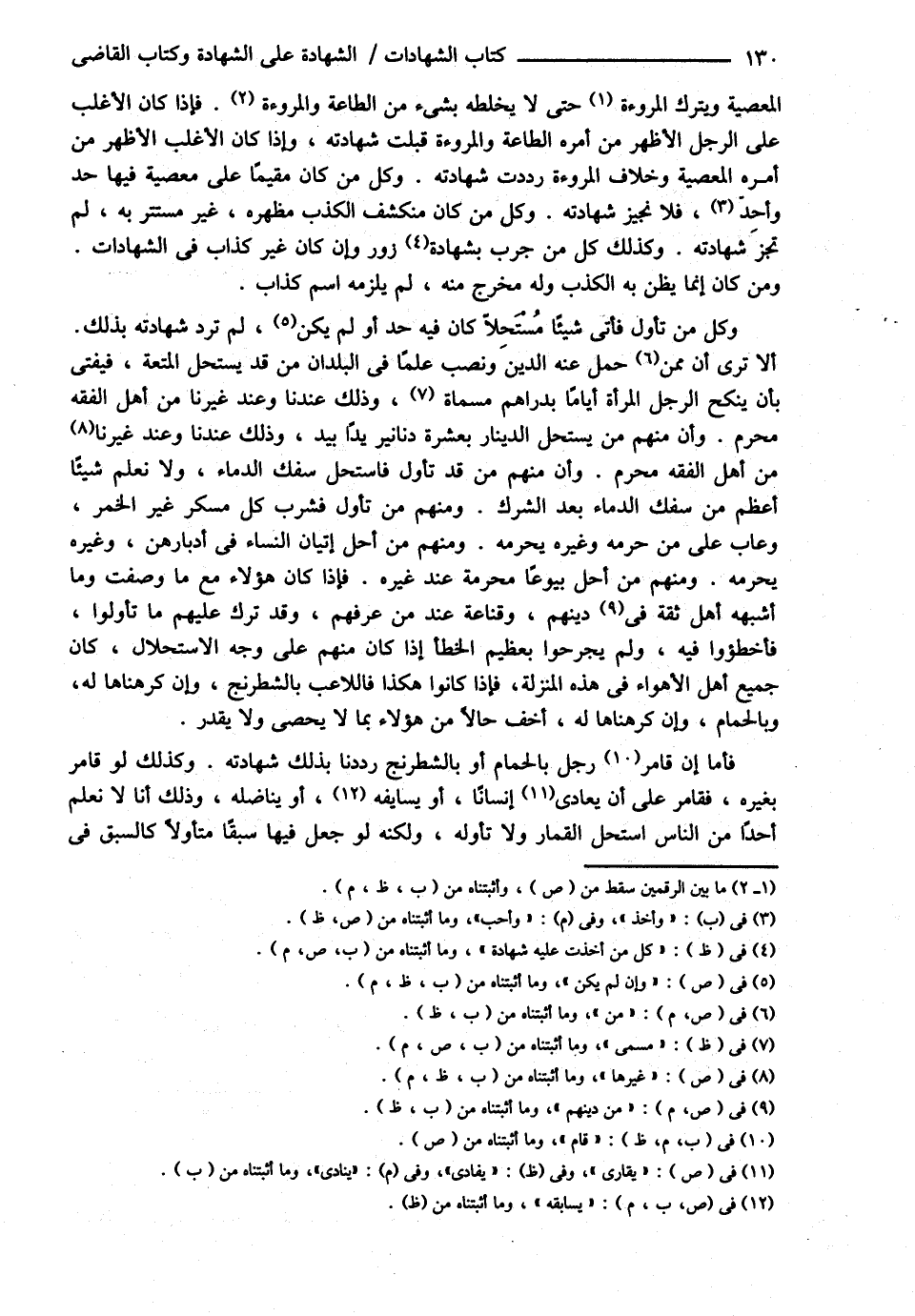 الْمَعْصِيَةَ وَيَتْرُكُ الْمُرُوءَةَ حَتَّى لاَ يَخْلِطَهُ بِشَيْءٍ مِنْ الطَّاعَةِ وَالْمُرُوءَةِ . فَإِذَا كَانَ الْأَغْلَبُ عَلَى الرَّجُلِ الْأَظْهَرُ مِنْ أَمْرِهِ الطَّاعَةَ , وَالْمُرُوءَةَ قُبِلَتْ شَهَادَتُهُ , وَإِذَا كَانَ الْأَغْلَبُ الْأَظْهَرُ مِنْ أَمْرِهِ الْمَعْصِيَةَ وَخِلاَفَ الْمُرُوءَةِ رَدَدْت شَهَادَتَهُ وَكُلُّ مَنْ كَانَ مُقِيمًا عَلَى مَعْصِيَةٍ فِيهَا حَدٌّ وَأُخِذَ فَلاَ نُجِيزُ شَهَادَتَهُ وَكُلُّ مَنْ كَانَ مُنْكَشِفَ الْكَذِبِ مُظْهِرَهُ غَيْرَ مُسْتَتِرٍ بِهِ لَمْ تَجُزْ شَهَادَتُهُ , وَكَذَلِكَ كُلُّ مَنْ جُرِّبَ بِشَهَادَةِ زُورٍ وَإِنْ كَانَ غَيْرَ كَذَّابٍ فِي الشَّهَادَاتِ وَمَنْ كَانَ إنَّمَا يُظَنُّ بِهِ الْكَذِبُ وَلَهُ مَخْرَجٌ مِنْهُ لَمْ يَلْزَمْهُ اسْمُ كَذَّابٍ وَكُلُّ مَنْ تَأَوَّلَ , فَأَتَى شَيْئًا مُسْتَحِلًّا كَانَ فِيهِ حَدٌّ , أَوْ لَمْ يَكُنْ لَمْ تُرَدَّ شَهَادَتُهُ بِذَلِكَ أَلاَ تَرَى أَنَّ مِمَّنْ حُمِلَ عَنْهُ الدِّينُ وَنُصِبَ عَلَمًا فِي الْبُلْدَانِ مَنْ قَدْ يَسْتَحِلُّ الْمُتْعَةَ فَيُفْتِيَ بِأَنْ يَنْكِحَ الرَّجُلُ الْمَرْأَةَ أَيَّامًا بِدَرَاهِمَ مُسَمَّاةٍ , وَذَلِكَ عِنْدَنَا وَعِنْدَ غَيْرِنَا مِنْ أَهْلِ الْفِقْهِ مُحَرَّمٌ وَأَنَّ مِنْهُمْ مَنْ يَسْتَحِلُّ الدِّينَارَ بِعَشَرَةِ دَنَانِيرَ يَدًا بِيَدٍ , وَذَلِكَ عِنْدَنَا وَعِنْدَ غَيْرِنَا مِنْ أَهْلِ الْفِقْهِ مُحَرَّمٌ وَأَنَّ مِنْهُمْ مَنْ قَدْ تَأَوَّلَ فَاسْتَحَلَّ سَفْكَ الدِّمَاءِ وَلاَ نَعْلَمُ شَيْئًا أَعْظَمَ مِنْ سَفْكِ الدِّمَاءِ بَعْدَ الشِّرْكِ وَمِنْهُمْ مَنْ تَأَوَّلَ فَشَرِبَ كُلَّ مُسْكِرٍ غَيْرَ الْخَمْرِ وَعَابَ عَلَى مَنْ حَرَّمَهُ وَغَيْرُهُ يُحَرِّمُهُ . وَمِنْهُمْ مَنْ أَحَلَّ إتْيَانَ النِّسَاءِ فِي أَدْبَارِهِنَّ وَغَيْرُهُ يُحَرِّمُهُ , وَمِنْهُمْ مَنْ أَحَلَّ بُيُوعًا مُحَرَّمَةً عِنْدَ غَيْرِهِ فَإِذَا كَانَ هَؤُلاَءِ مَعَ مَا وَصَفْت وَمَا أَشْبَهَهُ أَهْلَ ثِقَةٍ فِي دِينِهِمْ وَقَنَاعَةٍ عِنْدَ مَنْ عَرَفَهُمْ , وَقَدْ تَرَكَ عَلَيْهِمْ مَا تَأَوَّلُوا , فَأَخْطَئُوا فِيهِ وَلَمْ يُجْرَحُوا بِعَظِيمِ الْخَطَإِ إذَا كَانَ مِنْهُمْ عَلَى وَجْهِ الِاسْتِحْلاَلِ كَانَ جَمِيعُ أَهْلِ الْأَهْوَاءِ فِي هَذِهِ الْمَنْزِلَةِ فَإِذَا كَانُوا هَكَذَا فَاللَّاعِبُ بِالشِّطْرَنْجِ وَإِنْ كَرِهْنَاهَا لَهُ وَبِالْحَمَامِ وَإِنْ كَرِهْنَاهَا لَهُ أَخَفُّ حَالاً مِنْ هَؤُلاَءِ بِمَا لاَ يُحْصَى وَلاَ يُقَدَّرُ , فَأَمَّا إنْ قَامَ رَجُلٌ بِالْحَمَامِ , أَوْ بِالشِّطْرَنْجِ رَدَدْنَا بِذَلِكَ شَهَادَتَهُ , وَكَذَلِكَ لَوْ قَامَرَ بِغَيْرِهِ فَقَامَرَ عَلَى أَنْ يُعَادِيَ إنْسَانًا , أَوْ يُسَابِقَهُ , أَوْ يُنَاضِلَهُ , وَذَلِكَ أَنَّا لاَ نَعْلَمُ أَحَدًا مِنْ النَّاسِ اسْتَحَلَّ الْقِمَارَ وَلاَ تَأَوَّلَهُ وَلَكِنَّهُ لَوْ جَعَلَ فِيهَا سَبْقًا مُتَأَوَّلاً كَالسَّبْقِ فِي@