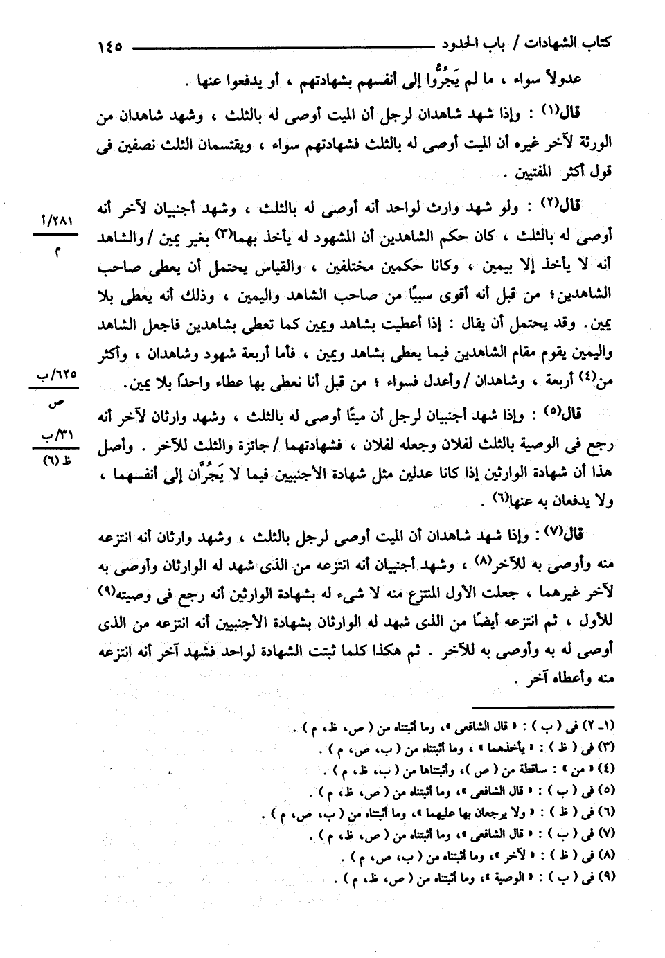 قَالَ الشَّافِعِيُّ : رحمه الله تعالى : وَلَوْ شَهِدَ وَارِثٌ لِوَاحِدٍ أَنَّهُ أَوْصَى لَهُ بِالثُّلُثِ وَشَهِدَ أَجْنَبِيَّانِ لِآخَرَ أَنَّهُ أَوْصَى لَهُ بِالثُّلُثِ كَانَ حُكْمُ الشَّاهِدَيْنِ أَنَّ الْمَشْهُودَ لَهُ يَأْخُذُ بِهِمَا بِغَيْرِ يَمِينٍ وَالشَّاهِدُ أَنَّهُ لاَ يَأْخُذُ إلَّا بِيَمِينٍ , وَكَانَا حُكْمَيْنِ مُخْتَلِفَيْنِ , وَالْقِيَاسُ يَحْتَمِلُ أَنْ يُعْطِيَ صَاحِبَ الشَّاهِدَيْنِ مِنْ قِبَلِ أَنَّهُ أَقْوَى سَبَبًا مِنْ صَاحِبِ الشَّاهِدِ , وَالْيَمِينِ , وَذَلِكَ أَنَّهُ يُعْطِي بِلاَ يَمِينٍ , وَقَدْ يَحْتَمِلُ أَنْ يُقَالَ إذَا أَعْطَيْت بِشَاهِدٍ وَيَمِينٍ كَمَا تُعْطِي بِشَاهِدَيْنِ فَاجْعَلْ الشَّاهِدَ , وَالْيَمِينَ يَقُومُ مَقَامَ الشَّاهِدَيْنِ فِيمَا يُعْطَى بِشَاهِدٍ وَيَمِينٍ , فَأَمَّا أَرْبَعَةُ شُهُودٍ وَشَاهِدَانِ وَأَكْثَرُ مِنْ أَرْبَعَةٍ وَشَاهِدَانِ وَأَعْدَلُ فَسَوَاءٌ مِنْ قِبَلِ أَنَّا نُعْطِي بِهَا عَطَاءً وَاحِدًا بِلاَ يَمِينٍ