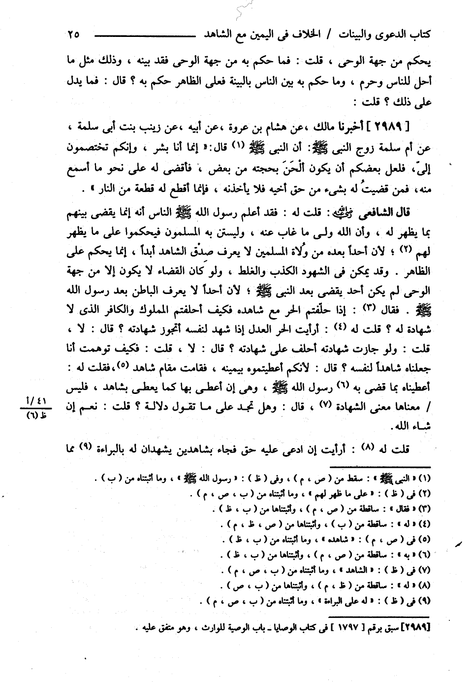 يَحْكُمُ مِنْ جِهَةِ الْوَحْيِ , قُلْت : فَمَا حَكَمَ بِهِ مِنْ جِهَةِ الْوَحْيِ فَقَدْ بَيَّنَهُ , وَذَلِكَ مِثْلُ مَا أَحَلَّ لِلنَّاسِ وَحَرَّمَ وَمَا حَكَمَ بِهِ بَيْنَ النَّاسِ بِالْبَيِّنَةِ فَعَلَى الظَّاهِرِ حَكَمَ بِهِ ؟ قَالَ فَمَا يَدُلُّ عَلَى ذَلِكَ ؟ قُلْت : أَخْبَرَنَا مَالِكٌ عَنْ هِشَامِ بْنِ عُرْوَةَ عَنْ أَبِيهِ عَنْ زَيْنَبَ بِنْتِ أَبِي سَلَمَةَ عَنْ أُمِّ سَلَمَةَ زَوْجِ النَّبِيِّ - صلى الله عليه وسلم - أَنَّ النَّبِيَّ - صلى الله عليه وسلم - قَالَ : ? إنَّمَا أَنَا بَشَرٌ تَخْتَصِمُونَ إلَيَّ فَلَعَلَّ بَعْضَكُمْ أَنْ يَكُونَ أَلْحَنَ بِحُجَّتِهِ مِنْ بَعْضٍ , فَأَقْضِي لَهُ عَلَى نَحْوِ مَا أَسْمَعُ مِنْهُ , فَمَنْ قَضَيْت لَهُ بِشَيْءٍ مِنْ حَقِّ أَخِيهِ فَلاَ يَأْخُذْنَهُ فَإِنَّمَا أَقْطَعُ لَهُ قِطْعَةً مِنْ النَّارِ ?
