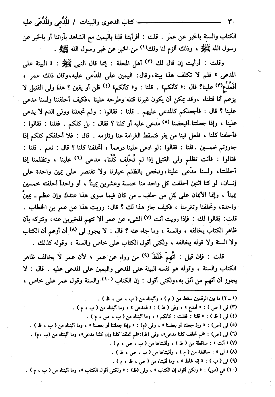 الْكِتَابِ وَالسُّنَّةِ بِالْخَبَرِ عَنْ عُمَرَ قُلْت أَفَرَأَيْتنَا قُلْنَا بِالْيَمِينِ مَعَ الشَّاهِدِ بِآرَائِنَا , أَوْ بِالْخَبَرِ عَنْ رَسُولِ اللَّهِ - صلى الله عليه وسلم - وَذَلِكَ أَلْزَمُ لَنَا وَلَك مِنْ الْخَبَرِ عَنْ غَيْرِ رَسُولِ اللَّهِ - صلى الله عليه وسلم - وَقُلْت أَرَأَيْت إنْ قَالَ لَك أَهْلُ الْمَحَلَّةِ إنَّمَا قَالَ النَّبِيُّ - صلى الله عليه وسلم - : ? الْبَيِّنَةُ عَلَى الْمُدَّعِي ? فَلِمَ لاَ تُكَلِّفُ هَذَا بَيِّنَةً وَقَالَ الْيَمِينُ عَلَى الْمُدَّعَى عَلَيْهِ وَقَالَ ذَلِكَ عُمَرُ أَفَمُدَّعَى عَلَيْنَا قَالَ ؟ كَأَنَّكُمْ قُلْنَا وَكَأَنَّكُمْ ظَنٌّ , أَوْ يَقِينٌ هَذَا وَلِيُّ الْقَتِيلِ لاَ يَزْعُمُ أَنَّا قَتَلْنَاهُ , وَقَدْ يُمْكِنُ أَنْ يَكُونَ غَيْرُنَا قَتَلَهُ وَطَرَحَهُ عَلَيْنَا فَكَيْفَ أَحَلَفَتْنَا وَلَسْنَا مُدَّعًى عَلَيْنَا قَالَ فَأَجْعَلُكُمْ كَالْمُدَّعَى عَلَيْهِمْ قُلْنَا فَقَالُوا وَلِمَ تَجْعَلْنَا وَوَلِيُّ الدَّمِ لاَ يَدَّعِي عَلَيْنَا , وَإِذَا جَعَلْتنَا أَفَبَعْضُنَا مُدَّعًى عَلَيْهِ , أَوْ كُلُّنَا ؟ فَقَالَ , بَلْ كُلُّكُمْ فَقُلْنَا فَقَالُوا فَأَحْلِفْنَا كُلَّنَا فَلَعَلَّ فِينَا مَنْ يُقِرُّ فَتَسْقُطُ الْغَرَامَةُ عَنَّا وَتَلْزَمُهُ قَالَ فَلاَ أُحَلِّفُكُمْ كُلَّكُمْ إذَا جَاوَزْتُمْ خَمْسِينَ قُلْنَا فَقَالُوا لَوْ ادَّعَى عَلَيْنَا دِرْهَمًا أَتُحَلِّفُنَا كُلَّنَا ؟ قَالَ نَعَمْ قُلْنَا فَقَالُوا فَأَنْتَ تَظْلِمُ وَلِيَّ الْقَتِيلِ إذَا لَمْ تُحَلِّفْنَا كُلَّنَا وَكُلُّنَا مُدَّعًى عَلَيْنَا وَتَظْلِمُنَا إذَا أَحَلَفَتْنَا وَلَسْنَا مُدَّعًى عَلَيْنَا وَتَخُصُّ بِالظُّلْمِ خِيَارَنَا وَلاَ تَقْتَصِرُ عَلَى يَمِينٍ وَاحِدَةٍ عَلَى إنْسَانٍ لَوْ كُنَّا اثْنَيْنِ أَحَلَفْت كُلَّ وَاحِدٍ مِنَّا خَمْسَةً وَعِشْرِينَ يَمِينًا , أَوْ وَاحِدًا أَحَلَفْتَهُ خَمْسِينَ يَمِينًا وَإِنَّمَا الْأَيْمَانُ عَلَى كُلِّ مَنْ حَلَفَ مَنْ كَانَ فِيمَا سِوَى هَذَا عِنْدَك وَإِنْ عَظُمَ يَمِينٌ وَاحِدَةٌ وَتُحَلِّفُنَا وَتُغْرِمُنَا فَكَيْفَ جَازَ هَذَا لَك ؟ قَالَ رَوَيْتُ هَذَا عَنْ عُمَرَ بْنِ الْخَطَّابِ رضي الله تعالى عنه قُلْت فَقَالُوا لَك فَإِذَا رَوَيْتَ أَنْتَ الشَّيْءَ عَنْ عُمَرَ أَلاَ تَتَّهِمَ الْمُخْبِرِينَ عَنْهُ وَتَتْرُكُهُ لِأَنَّ ظَاهِرَ الْكِتَابِ يُخَالِفُهُ وَالسُّنَّةِ وَمَا جَاءَ عَنْهُ ؟ قَالَ لاَ يَجُوزُ لِي أَنْ أَزْعُمَ أَنَّ الْكِتَابَ وَلاَ السُّنَّةَ وَلاَ قَوْله يُخَالِفُهُ وَلَكِنِّي أَقُولُ الْكِتَابُ عَلَى خَاصٍّ وَالسُّنَّةُ وَقَوْلُهُ كَذَلِكَ قُلْت فَإِنْ قِيلَ : إنَّهُ غَلِطَ مَنْ رَوَاهُ عَنْ عُمَرَ ; لِأَنَّ عُمَرَ لاَ يُخَالِفُ ظَاهِرَ الْكِتَابِ وَالسُّنَّةِ وَقَوْلُهُ هُوَ نَفْسُهُ الْبَيِّنَةُ عَلَى الْمُدَّعِي , وَالْيَمِينُ عَلَى الْمُدَّعَى عَلَيْهِ قَالَ لاَ يَجُوزُ أَنْ أَتَّهِمَ مَنْ أَثِقُ بِهِ وَلَكِنِّي أَقُولُ إنَّ الْكِتَابَ وَالسُّنَّةَ . وَقَوْلَ عُمَرَ عَلَى خَاصٍّ@