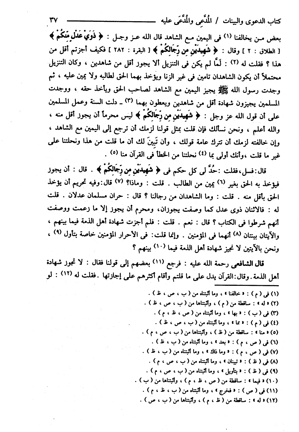 قَالَ الشَّافِعِيُّ : رحمه الله تعالى : فَرَجَعَ بَعْضُهُمْ إلَى قَوْلِنَا فَقَالَ لاَ تَجُوزُ شَهَادَةُ أَهْلِ الذِّمَّةِ . وَقَالَ : الْقُرْآنُ يَدُلُّ عَلَى مَا قُلْتُمْ وَأَقَامَ أَكْثَرُهُمْ عَلَى إجَازَتِهَا فَقُلْت لَهُ : لَوْ@