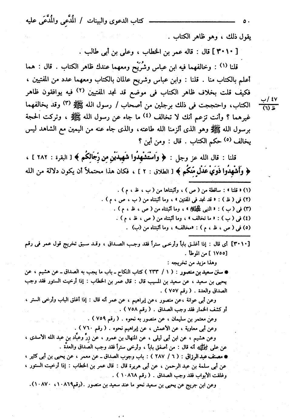 يَقُولُ ذَلِكَ وَهُوَ ظَاهِرُ الْكِتَابِ قَالَ : قَالَهُ عُمَرُ بْنُ الْخَطَّابِ وَعَلِيُّ بْنُ أَبِي طَالِبٍ رضي الله تعالى عنهما , قُلْنَا وَخَالَفَهُمَا فِيهِ ابْنُ عَبَّاسٍ وَشُرَيْحٌ وَمَعَهُمَا عِنْدَك ظَاهِرُ الْكِتَابِ قَالَ هُمَا أَعْلَمُ بِالْكِتَابِ مِنَّا قُلْنَا وَابْنُ عَبَّاسٍ وَشُرَيْحٌ عَالِمَانِ بِالْكِتَابِ وَمَعَهُمَا عَدَدٌ مِنْ الْمُفْتِينَ فَكَيْفَ قُلْت بِخِلاَفِ ظَاهِرِ الْكِتَابِ فِي مَوْضِعٍ قَدْ نَجِدُ الْمُفْتِينَ فِيهِ يُوَافِقُونَ ظَاهِرَ الْكِتَابِ وَاحْتَجَجْت فِي ذَلِكَ بِرَجُلَيْنِ مِنْ أَصْحَابِ النَّبِيِّ عليه السلام , وَقَدْ يُخَالِفُهُمَا غَيْرُهُمَا وَأَنْتَ تَزْعُمُ أَنَّك مَا تُخَالِفُ مَا جَاءَ عَنْ رَسُولِ اللَّهِ - صلى الله عليه وسلم - وَتَرَكْت الْحُجَّةَ بِرَسُولِ اللَّهِ - صلى الله عليه وسلم - وَهُوَ الَّذِي أَلْزَمَنَا اللَّهُ طَاعَتَهُ وَاَلَّذِي جَاءَ عَنْهُ مِنْ الْيَمِينِ مَعَ الشَّاهِدِ لَيْسَ يُخَالِفُ حُكْمَ الْكِتَابِ قَالَ وَمِنْ أَيْنَ ؟ قُلْنَا قَالَ اللَّهُ عَزَّ وَجَلَّ : ? وَاسْتَشْهِدُوا شَهِيدَيْنِ مِنْ رِجَالِكُمْ ? : ? وَأَشْهِدُوا ذَوَيْ عَدْلٍ مِنْكُمْ ? فَكَانَ هَذَا مُحْتَمَلاً أَنْ يَكُونَ دَلاَلَةً مِنْ اللَّهِ@