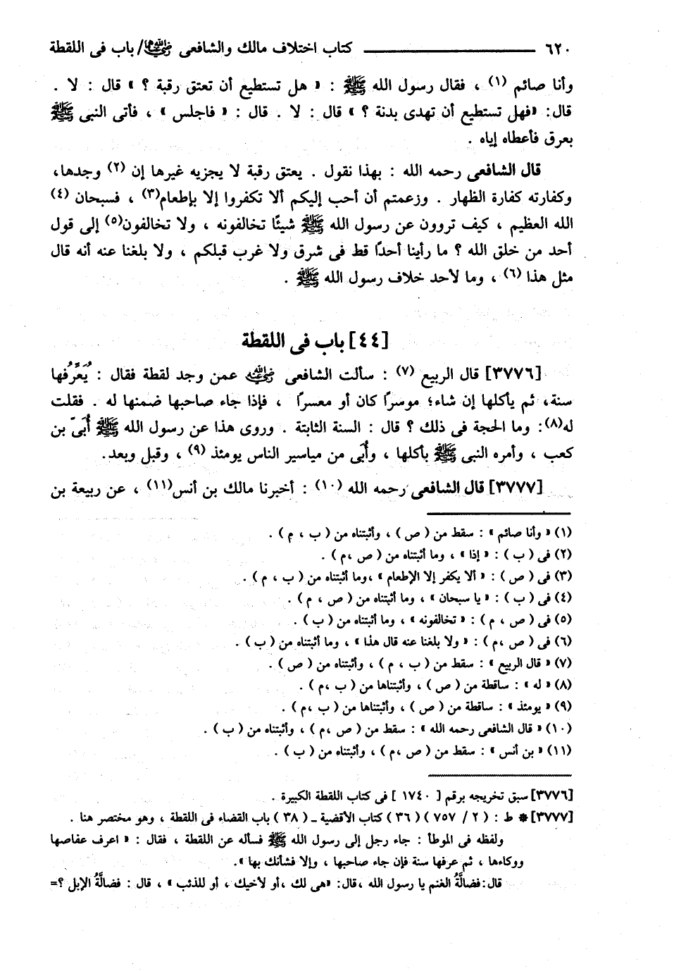 قَالَ الشَّافِعِيُّ : رحمه الله تعالى أَخْبَرَنَا مَالِكُ بْنُ أَنَسٍ عَنْ رَبِيعَةَ بْنِ@