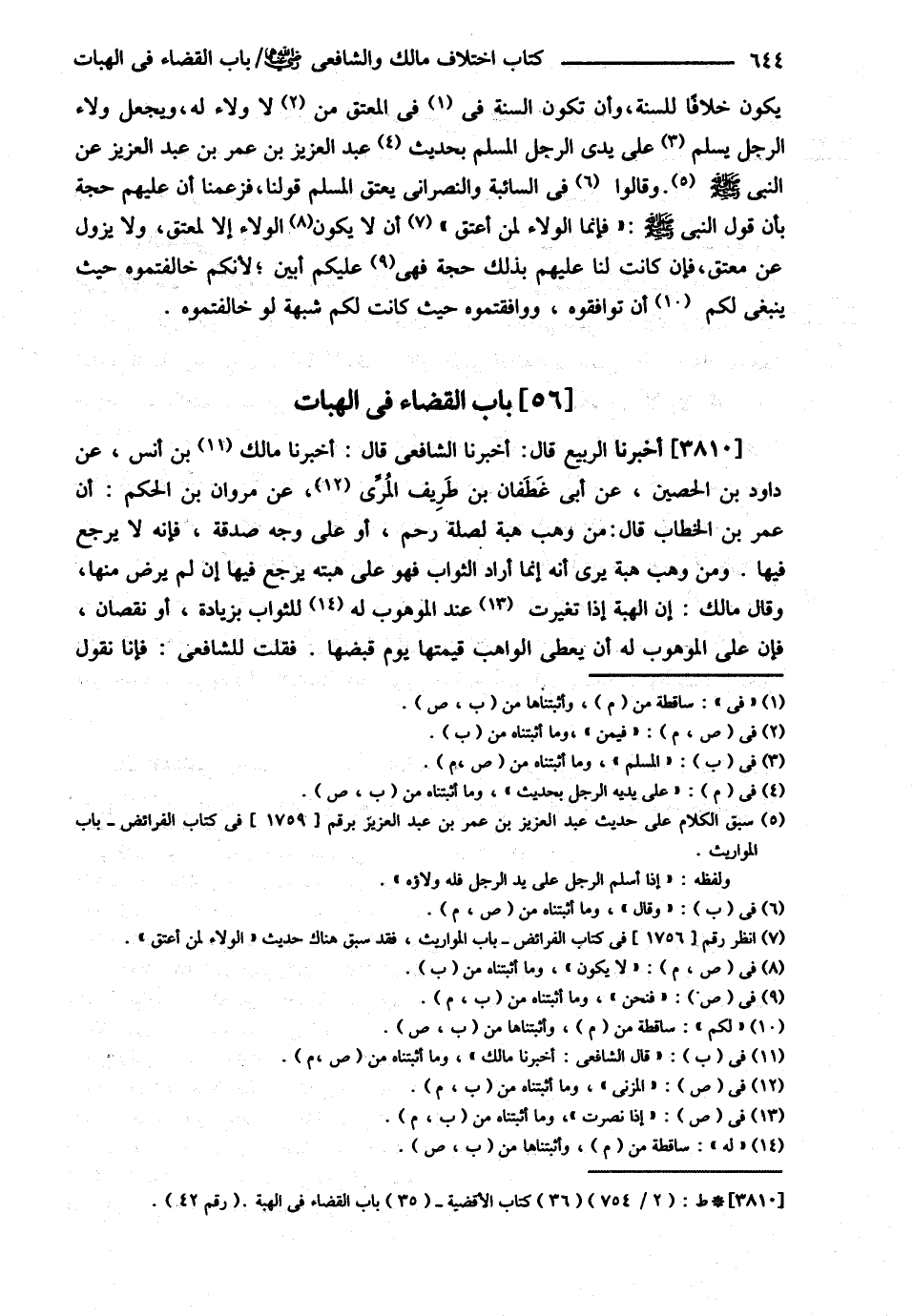 قَالَ الشَّافِعِيُّ : : أَخْبَرَنَا مَالِكُ بْنُ أَنَسٍ عَنْ دَاوُد بْنِ الْحُصَيْنِ عَنْ أَبِي غَطَفَانَ بْنِ طَرِيفٍ الْمُرِّيَّ عَنْ مَرْوَانَ بْنِ الْحَكَمِ أَنَّ عُمَرَ بْنَ الْخَطَّابِ قَالَ : مَنْ وَهَبَ هِبَةً لِصِلَةِ رَحِمٍ أَوْ عَلَى وَجْهِ صَدَقَةٍ فَإِنَّهُ لاَ يَرْجِعُ فِيهَا وَمَنْ وَهَبَ هِبَةً يَرَى أَنَّهُ إنَّمَا أَرَادَ الثَّوَابَ فَهُوَ عَلَى هِبَتِهِ يَرْجِعُ فِيهَا إنْ لَمْ يَرْضَ مِنْهَا وَقَالَ مَالِكٌ : إنَّ الْهِبَةَ إذَا تَغَيَّرَتْ عِنْدَ الْمَوْهُوبِ لَهُ لِلثَّوَابِ بِزِيَادَةٍ أَوْ نُقْصَانٍ فَإِنَّ عَلَى الْمَوْهُوبِ لَهُ أَنْ يُعْطِيَ الْوَاهِبَ قِيمَتَهَا يَوْمَ قَبَضَهَا فَقُلْت لِلشَّافِعِيِّ : فَإِنَّا نَقُولُ@