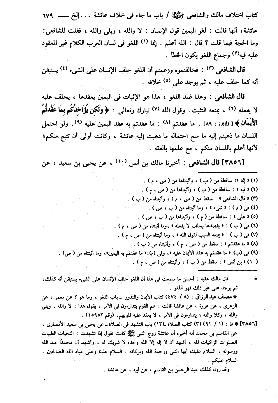 عَائِشَةَ أَنَّهَا قَالَتْ : لَغْوُ الْيَمِينِ قَوْلُ الْأَنِسَانِ لاَ وَاَللَّهِ وَبَلَى وَاَللَّهِ فَقُلْت لِلشَّافِعِيِّ : وَمَا الْحُجَّةُ فِيمَا قُلْت ؟ قَالَ : اللَّهُ أَعْلَمُ اللَّغْوُ فِي لِسَانِ الْعَرَبِ الْكَلاَمُ غَيْرُ الْمَعْقُودِ عَلَيْهِ وَجِمَاعُ اللَّغْوِ يَكُونُ الْخَطَأَ