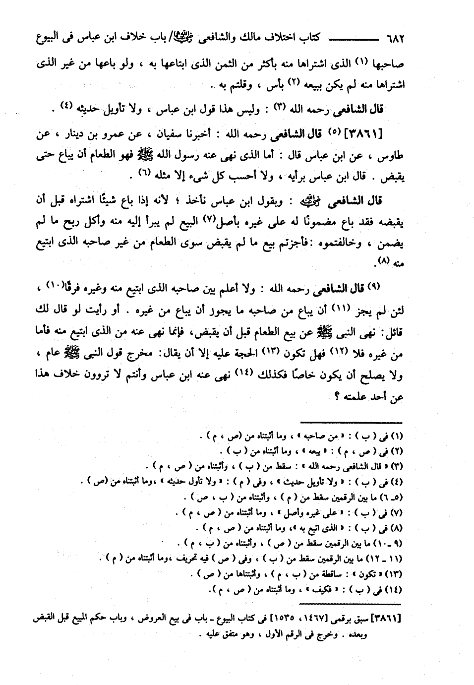 قَالَ الشَّافِعِيُّ : : رحمه الله تعالى أَخْبَرَنَا سُفْيَانُ عَنْ عَمْرِو بْنِ دِينَارٍ عَنْ طَاوُسٍ عَنْ ابْنِ عَبَّاسٍ قَالَ : أَمَّا : ? الَّذِي نَهَى عَنْهُ رَسُولُ اللَّهِ - صلى الله عليه وسلم - فَهُوَ الطَّعَامُ أَنْ يُبَاعَ حَتَّى يُقْبَضَ ? قَالَ : ابْنُ عَبَّاسٍ بِرَأْيِهِ وَلاَ أَحْسِبُ كُلَّ شَيْءٍ إلَّا مِثْلَهُ