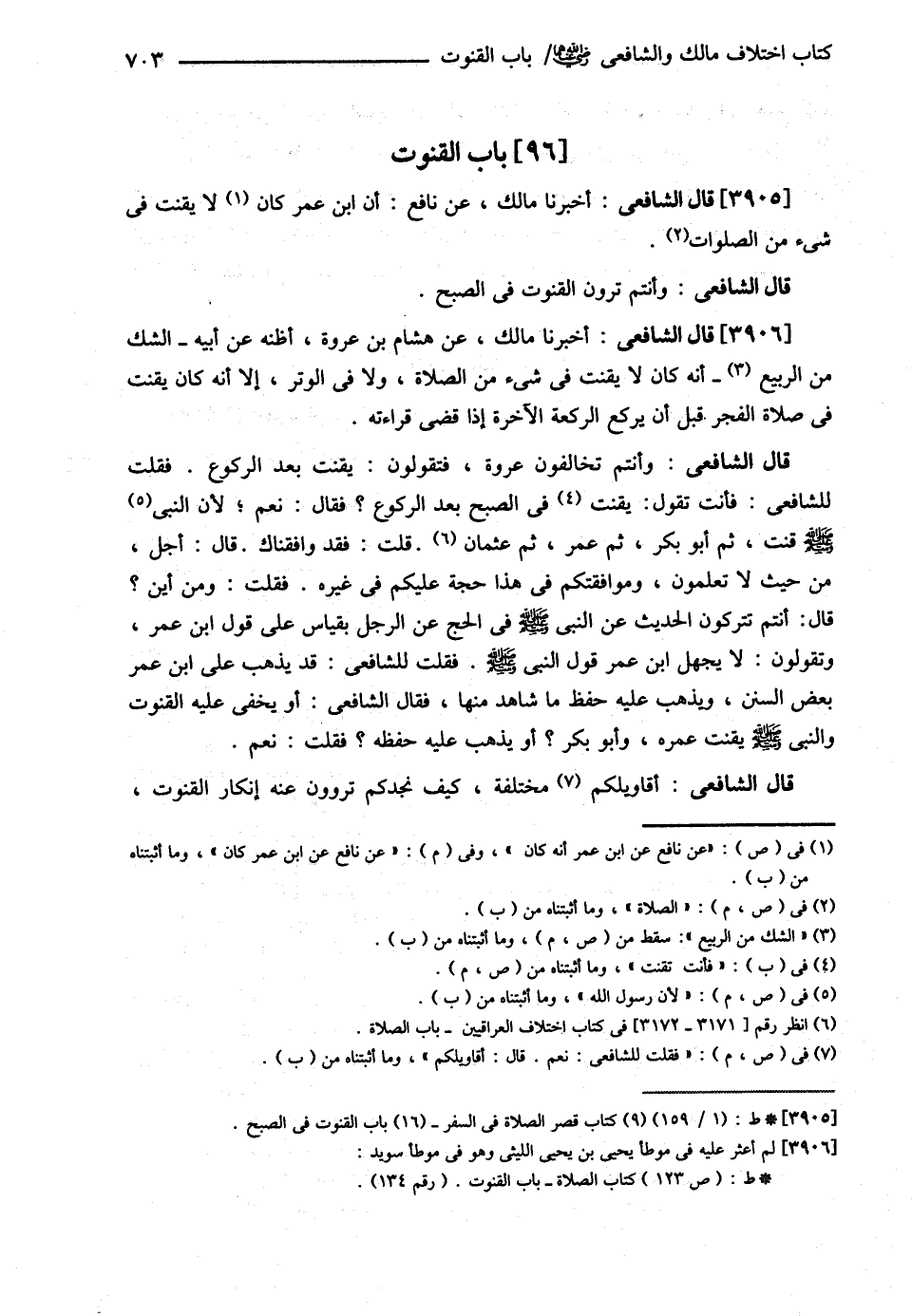 قَالَ الشَّافِعِيُّ : : وَأَنْتُمْ تَرَوْنَ الْقُنُوتَ فِي الصُّبْحِ