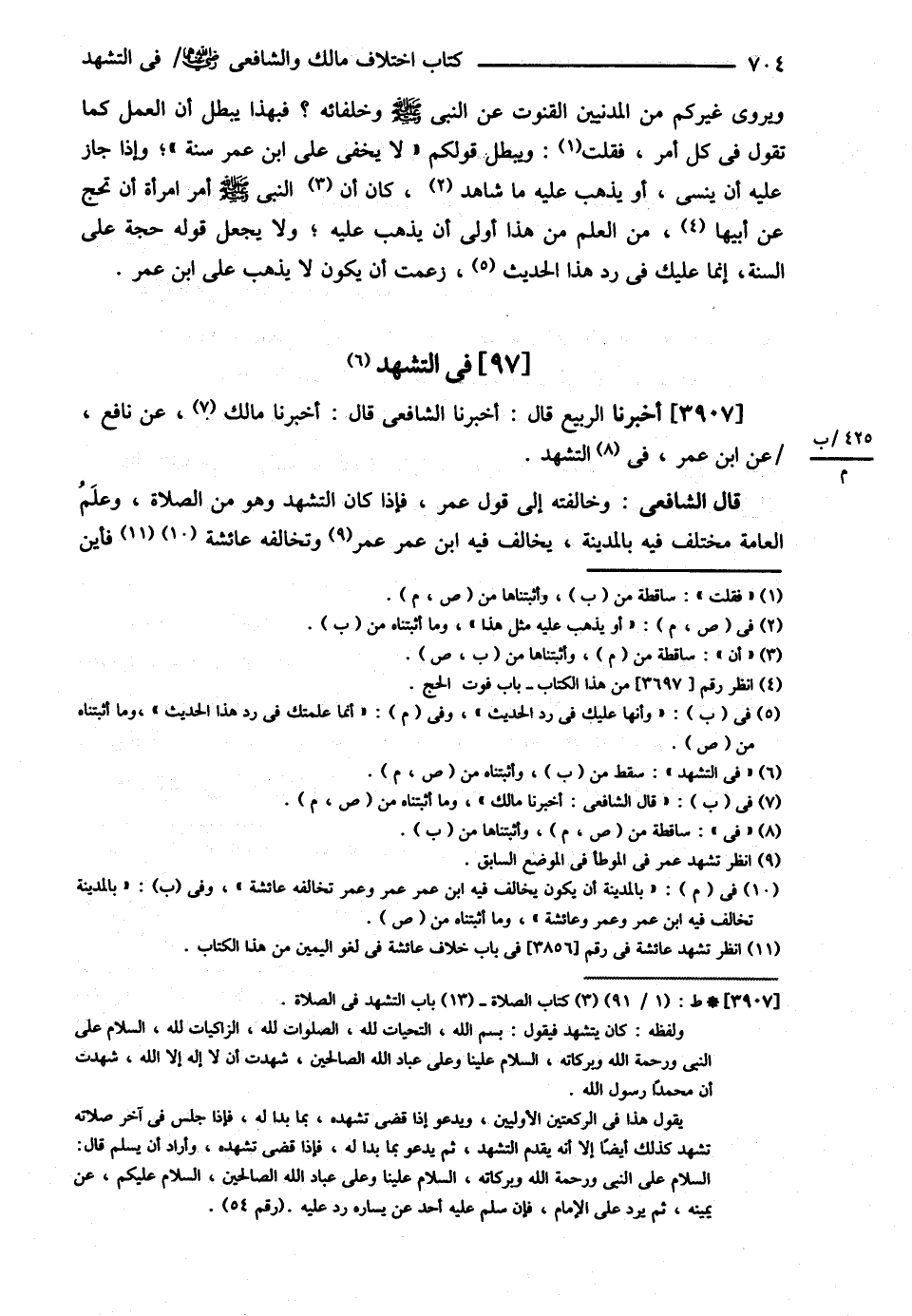 قَالَ الشَّافِعِيُّ : : وَخَالَفْتُهُ إلَى قَوْلِ عُمَرَ فَإِذَا كَانَ التَّشَهُّدُ وَهُوَ مِنْ الصَّلاَةِ وَعِلْمُ الْعَامَّةِ مُخْتَلِفٌ فِيهِ بِالْمَدِينَةِ تُخَالِفُ فِيهِ ابْنَ عُمَرَ وَعُمَرَ وَعَائِشَةَ فَأَيْنَ@