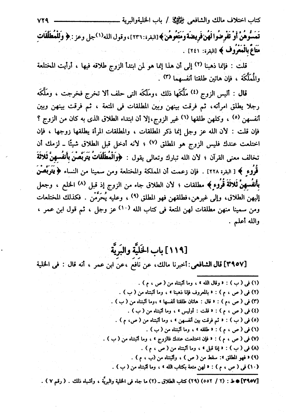قَالَ الشَّافِعِيُّ : : أَخْبَرَنَا مَالِكٌ عَنْ نَافِعٍ عَنْ ابْنِ عُمَرَ أَنَّهُ قَالَ فِي الْخَلِيَّةِ@