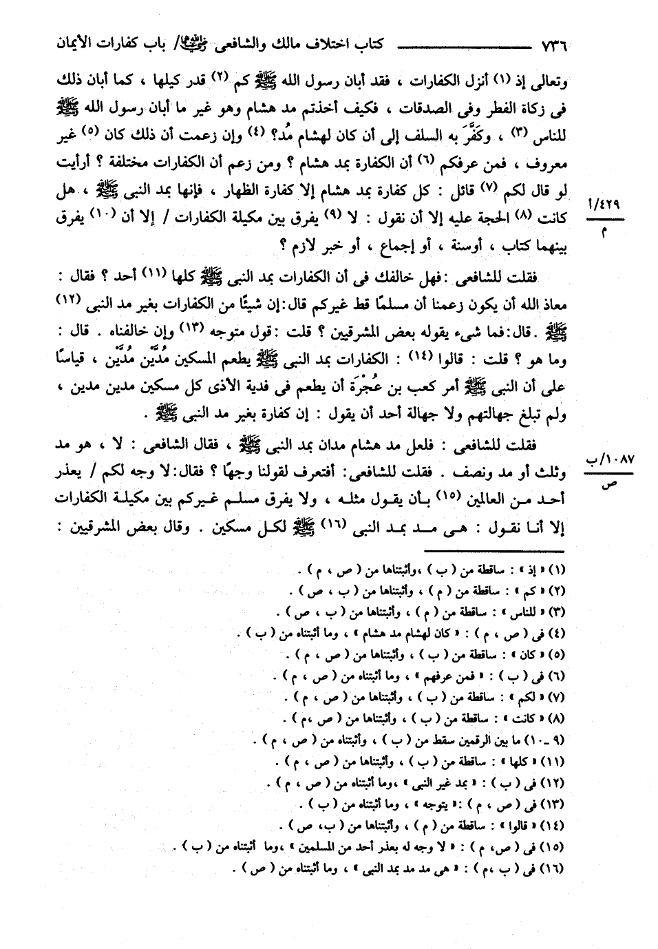 أَنْزَلَ الْكَفَّارَاتِ فَقَدْ أَبَانَ رَسُولُ اللَّهِ - صلى الله عليه وسلم - كَمْ قَدْرِ كَيْلِهَا كَمَا أَبَانَ ذَلِكَ فِي زَكَاةِ الْفِطْرِ وَفِي الصَّدَقَاتِ فَكَيْفَ أَخَذْتُمْ مُدَّ هِشَامٍ وَهُوَ غَيْرُ مَا أَبَانَ رَسُولُ اللَّهِ - صلى الله عليه وسلم - لِلنَّاسِ وَكَفَّرَ بِهِ السَّلَفُ إلَى أَنْ كَانَ لِهِشَامٍ مُدٌّ وَإِنْ زَعَمْت أَنَّ ذَلِكَ غَيْرُ مَعْرُوفٍ فَمَنْ عَرَّفَهُمْ أَنَّ الْكَفَّارَةَ بِمُدِّ هِشَامٍ وَمَنْ زَعَمَ أَنَّ الْكَفَّارَاتِ مُخْتَلِفَةٌ أَرَأَيْت لَوْ قَالَ قَائِلٌ : كُلُّ كَفَّارَةٍ بِمُدِّ هِشَامٍ إلَّا كَفَّارَةَ الظِّهَارِ فَإِنَّمَا بِمُدِّ النَّبِيِّ - صلى الله عليه وسلم - هَلْ الْحُجَّةُ عَلَيْهِ إلَّا أَنْ نَقُولَ : لاَ يُفَرِّقُ بَيْنَهُمَا إلَّا كِتَابٌ أَوْ سُنَّةٌ أَوْ إجْمَاعٌ أَوْ خَبَرٌ لاَزِمٌ . فَقَالَ لِلشَّافِعِيِّ : فَهَلْ خَالَفَك فِي أَنَّ الْكَفَّارَاتِ بِمُدِّ النَّبِيِّ - صلى الله عليه وسلم - أَحَدٌ ؟ فَقَالَ : مَعَاذَ اللَّهِ أَنْ يَكُونَ زَعْمُنَا أَنَّ مُسْلِمًا قَطُّ غَيْرَكُمْ قَالَ إنَّ شَيْئًا مِنْ الْكَفَّارَاتِ بِمُدِّ غَيْرِ النَّبِيِّ - صلى الله عليه وسلم - قَالَ : فَمَا شَيْءٌ يَقُولُهُ بَعْضُ الْمَشْرِقِيِّينَ ؟ . قُلْت : قَوْلٌ مُتَوَجِّهٌ وَإِنْ خَالَفْنَاهُ قَالَ : وَمَا هُوَ ؟ قُلْت : قَالُوا الْكَفَّارَاتُ بِمُدِّ النَّبِيِّ - صلى الله عليه وسلم - يُطْعِمُ الْمِسْكِينَ مُدَّيْنِ مُدَّيْنِ قِيَاسًا عَلَى : ? أَنَّ النَّبِيَّ - صلى الله عليه وسلم - أَمَرَ كَعْبَ بْنَ عُجْرَةَ أَنْ يُطْعِمَ فِي فِدْيَةِ الْأَذَى كُلَّ مِسْكِينٍ مُدَّيْنِ مُدَّيْنِ ? وَلَمْ تَبْلُغْ جَهَالَتُهُمْ وَلاَ جَهَالَةُ أَحَدٍ أَنْ يَقُولَ : إنَّ كَفَّارَةً بِغَيْرِ مُدِّ النَّبِيِّ - صلى الله عليه وسلم - . فَقُلْت لِلشَّافِعِيِّ : فَلَعَلَّ مُدَّ هِشَامٍ مُدَّانِ بِمُدِّ النَّبِيِّ - صلى الله عليه وسلم - فَقَالَ الشَّافِعِيُّ : لاَ هُوَ مُدٌّ وَثُلُثٌ أَوْ مُدٌّ وَنِصْفٌ , فَقُلْت لِلشَّافِعِيِّ : أَفَتَعْرِفُ لِقَوْلِنَا وَجْهًا ؟ فَقَالَ : لاَ وَجْهَ لَكُمْ يُعْذَرُ أَحَدٌ مِنْ الْعَالَمِينَ بِأَنْ يَقُولَ مِثْلَهُ وَلاَ يُفَرِّقُ مُسْلِمٌ غَيْرُكُمْ بَيْنَ مَكِيلَةِ الْكَفَّارَاتِ إلَّا أَنَّا نَقُولُ هِيَ مُدٌّ مُدٌّ بِمُدِّ النَّبِيِّ - صلى الله عليه وسلم - لِكُلِّ مِسْكِينٍ وَقَالَ بَعْضُ الْمَشْرِقِيِّينَ :@