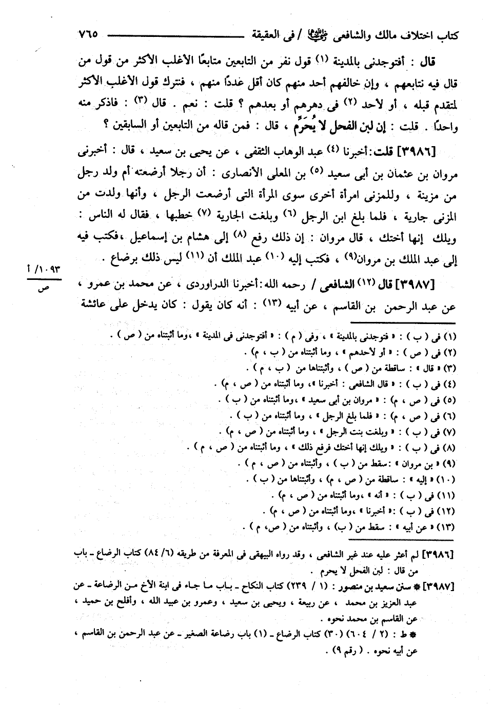 قَالَ الشَّافِعِيُّ : : أَخْبَرَنَا عَبْدُ الْوَهَّابِ الثَّقَفِيُّ عَنْ يَحْيَى بْنِ سَعِيدٍ قَالَ : أَخْبَرَنِي مَرْوَانُ بْنُ عُثْمَانَ بْنِ أَبِي سَعِيدِ بْنِ الْمُعَلَّى الْأَنْصَارِيِّ أَنَّ رَجُلاً أَرْضَعَتْهُ أُمُّ وَلَدِ رَجُلٍ مِنْ مُزَيْنَةَ وَلِلْمُزَنِيِّ امْرَأَةٌ أُخْرَى سِوَى الْمَرْأَةِ الَّتِي أَرْضَعَتْ الرَّجُلَ وَأَنَّهَا وَلَدَتْ مِنْ الْمُزَنِيِّ جَارِيَةً فَلَمَّا بَلَغَ ابْنُ الرَّجُلِ وَبَلَغَتْ بِنْتُ الرَّجُلِ خَطَبَهَا فَقَالَ لَهُ النَّاسُ : وَيْلَك إنَّهَا أُخْتُك فَرَفَعَ ذَلِكَ إلَى هِشَامِ بْنِ إسْمَاعِيلَ فَكَتَبَ فِيهِ إلَى عَبْدِ الْمَلِكِ فَكَتَبَ إلَيْهِ عَبْدُ الْمَلِكِ أَنَّهُ لَيْسَ ذَلِكَ بِرَضَاعٍ , أَخْبَرَنَا الشَّافِعِيُّ أَخْبَرَنَا الدَّرَاوَرْدِيُّ عَنْ مُحَمَّدِ بْنِ عَمْرٍو عَنْ عَبْدِ الرَّحْمَنِ بْنِ الْقَاسِمِ أَنَّهُ كَانَ يَقُولُ كَانَ يَدْخُلُ عَلَى عَائِشَةَ@