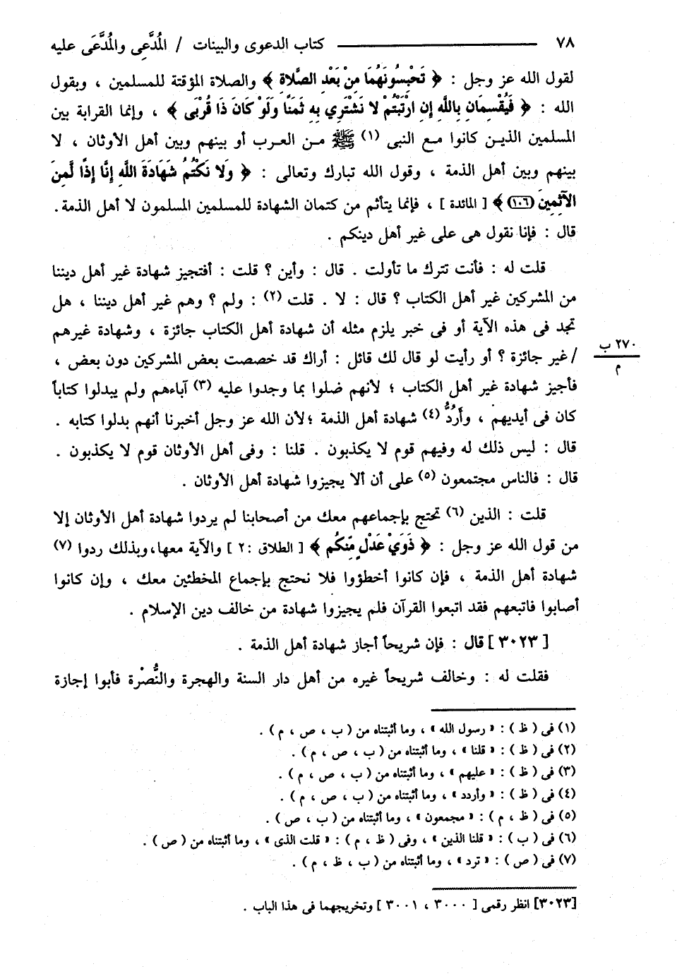 لِقَوْلِ اللَّهِ عَزَّ وَجَلَّ : ? تَحْبِسُونَهُمَا مِنْ بَعْدِ الصَّلاَةِ ? وَالصَّلاَةُ الْمُؤَقَّتَةُ لِلْمُسْلِمِينَ وَبِقَوْلِ اللَّهِ تَبَارَكَ وَتَعَالَى : ? فَيُقْسِمَانِ بِاَللَّهِ إنْ ارْتَبْتُمْ لاَ نَشْتَرِي بِهِ ثَمَنًا وَلَوْ كَانَ ذَا قُرْبَى ? وَإِنَّمَا الْقَرَابَةُ بَيْنَ الْمُسْلِمِينَ الَّذِينَ كَانُوا مَعَ النَّبِيِّ - صلى الله عليه وسلم - مِنْ الْعَرَبِ , أَوْ بَيْنَهُمْ وَبَيْنَ أَهْلِ الْأَوْثَانِ لاَ بَيْنَهُمْ وَبَيْنَ أَهْلِ الذِّمَّةِ وَقَوْلُ اللَّهِ تَبَارَكَ وَتَعَالَى : ? وَلاَ نَكْتُمُ شَهَادَةَ اللَّهِ إنَّا إذًا لَمِنْ الْأَثِمِينَ ? فَإِنَّمَا يَتَأَثَّمُ مِنْ كِتْمَانِ الشَّهَادَةِ لِلْمُسْلِمِينَ الْمُسْلِمُونَ لاَ أَهْلُ الذِّمَّةِ قَالَ فَإِنَّا نَقُولُ هِيَ عَلَى غَيْرِ أَهْلِ دِينِكُمْ قُلْت لَهُ فَأَنْتَ تَتْرُكُ مَا تَأَوَّلْت قَالَ وَأَيْنَ قُلْت أَفَتُجِيزُ شَهَادَةَ غَيْرِ أَهْلِ دِينِنَا مِنْ الْمُشْرِكِينَ غَيْرِ أَهْلِ الْكِتَابِ قَالَ لاَ قُلْت وَلِمَ وَهُمْ غَيْرُ أَهْلِ دِينِنَا هَلْ تَجِدُ فِي هَذِهِ الآيَةِ , أَوْ فِي خَبَرٍ يَلْزَمُ مِثْلُهُ أَنَّ شَهَادَةَ أَهْلِ الْكِتَابِ جَائِزَةٌ وَشَهَادَةَ غَيْرِهِمْ غَيْرُ جَائِزَةٍ , أَوْ رَأَيْت لَوْ قَالَ لَك قَائِلٌ أَرَاك قَدْ خَصَّصْت بَعْضَ الْمُشْرِكِينَ دُونَ بَعْضٍ فَأُجِيزُ شَهَادَةَ غَيْرِ أَهْلِ الْكِتَابِ ; لِأَنَّهُمْ ضَلُّوا بِمَا وَجَدُوا عَلَيْهِ آبَاءَهُمْ وَلَمْ يُبَدِّلُوا كِتَابًا كَانَ فِي أَيْدِيهمْ وَأَرُدُّ شَهَادَةَ أَهْلِ الذِّمَّةِ ; لِأَنَّ اللَّهَ عَزَّ وَجَلَّ أَخْبَرَنَا أَنَّهُمْ بَدَّلُوا كِتَابَهُ قَالَ لَيْسَ ذَلِكَ لَهُ وَفِيهِمْ قَوْمٌ لاَ يَكْذِبُونَ قُلْنَا وَفِي أَهْلِ الْأَوْثَانِ قَوْمٌ لاَ يَكْذِبُونَ قَالَ فَالنَّاسُ مُجْتَمِعُونَ عَلَى أَنْ لاَ يُجِيزُوا شَهَادَةَ أَهْلِ الْأَوْثَانِ قُلْنَا الَّذِينَ تَحْتَجُّ بِإِجْمَاعِهِمْ مَعَك مِنْ أَصْحَابِنَا لَمْ يَرُدُّوا شَهَادَةَ أَهْلِ الْأَوْثَانِ إلَّا مِنْ قَوْلِ اللَّهِ عَزَّ وَجَلَّ : ? ذَوَيْ عَدْلٍ مِنْكُمْ ? , وَالْآيَةُ مَعَهَا وَبِذَلِكَ رَدُّوا شَهَادَةَ أَهْلِ الذِّمَّةِ فَإِنْ كَانُوا أَخْطَئُوا فَلاَ نَحْتَجُّ بِإِجْمَاعِ الْمُخْطِئِينَ مَعَك وَإِنْ كَانُوا أَصَابُوا فَاتَّبِعْهُمْ فَقَدْ اتَّبَعُوا الْقُرْآنَ فَلَمْ يُجِيزُوا شَهَادَةَ مَنْ خَالَفَ دِينَ الْإِسْلاَمِ قَالَ فَإِنَّ شُرَيْحًا أَجَازَ شَهَادَةَ أَهْلِ الذِّمَّةِ فَقُلْت لَهُ وَخَالَفَ شُرَيْحًا غَيْرُهُ مِنْ أَهْلِ دَارِ السُّنَّةِ , وَالْهِجْرَةِ وَالنُّصْرَةِ , فَأَبَوْا إجَازَةَ@