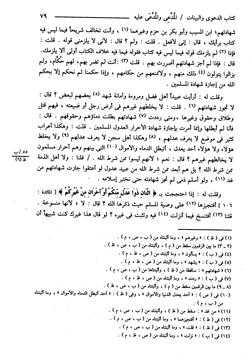 شَهَادَتِهِمْ ابْنُ الْمُسَيِّبِ وَأَبُو بَكْرِ بْنُ حَزْمٍ وَغَيْرُهُمَا وَأَنْتَ تُخَالِفُ شُرَيْحًا فِيمَا لَيْسَ فِيهِ كِتَابٌ بِرَأْيِك قَالَ إنِّي لاََفْعَلُ قُلْت وَلِمَ قَالَ ; لِأَنَّهُ لاَ يَلْزَمُنِي قَوْلُهُ قُلْت فَإِذَا لَمْ يَلْزَمْك قَوْلُهُ فِيمَا لَيْسَ فِيهِ كِتَابٌ فَقَوْلُهُ فِيمَا فِيهِ خِلاَفُ الْكِتَابِ أَوْلَى أَنْ لاَ يَلْزَمَك قَالَ فَإِذَا لَمْ أُجِزْ شَهَادَتَهُمْ أَضْرَرْت بِهِمْ قُلْت أَنْتَ لَمْ تَضُرَّ بِهِمْ لَهُمْ حُكَّامٌ وَلَمْ يَزَالُوا يَسْأَلُونَ ذَلِكَ مِنْهُمْ وَلاَ نَمْنَعُهُمْ مِنْ حُكَّامِهِمْ , وَإِذَا حَكَمْنَا لَمْ نَحْكُمْ إلَّا بِحُكْمِ اللَّهِ مِنْ إجَازَةِ شَهَادَةِ الْمُسْلِمِينَ .