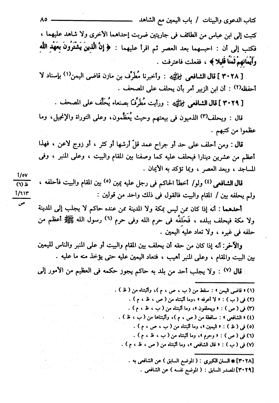 قَالَ الشَّافِعِيُّ : رحمه الله تعالى : وَأَخْبَرَنَا مُطَرِّفُ بْنُ مَازِنٍ بِإِسْنَادٍ لاَ أَعْرِفُهُ أَنَّ ابْنَ الزُّبَيْرِ أَمَرَ بِأَنْ يَحْلِفَ عَلَى الْمُصْحَفِ .