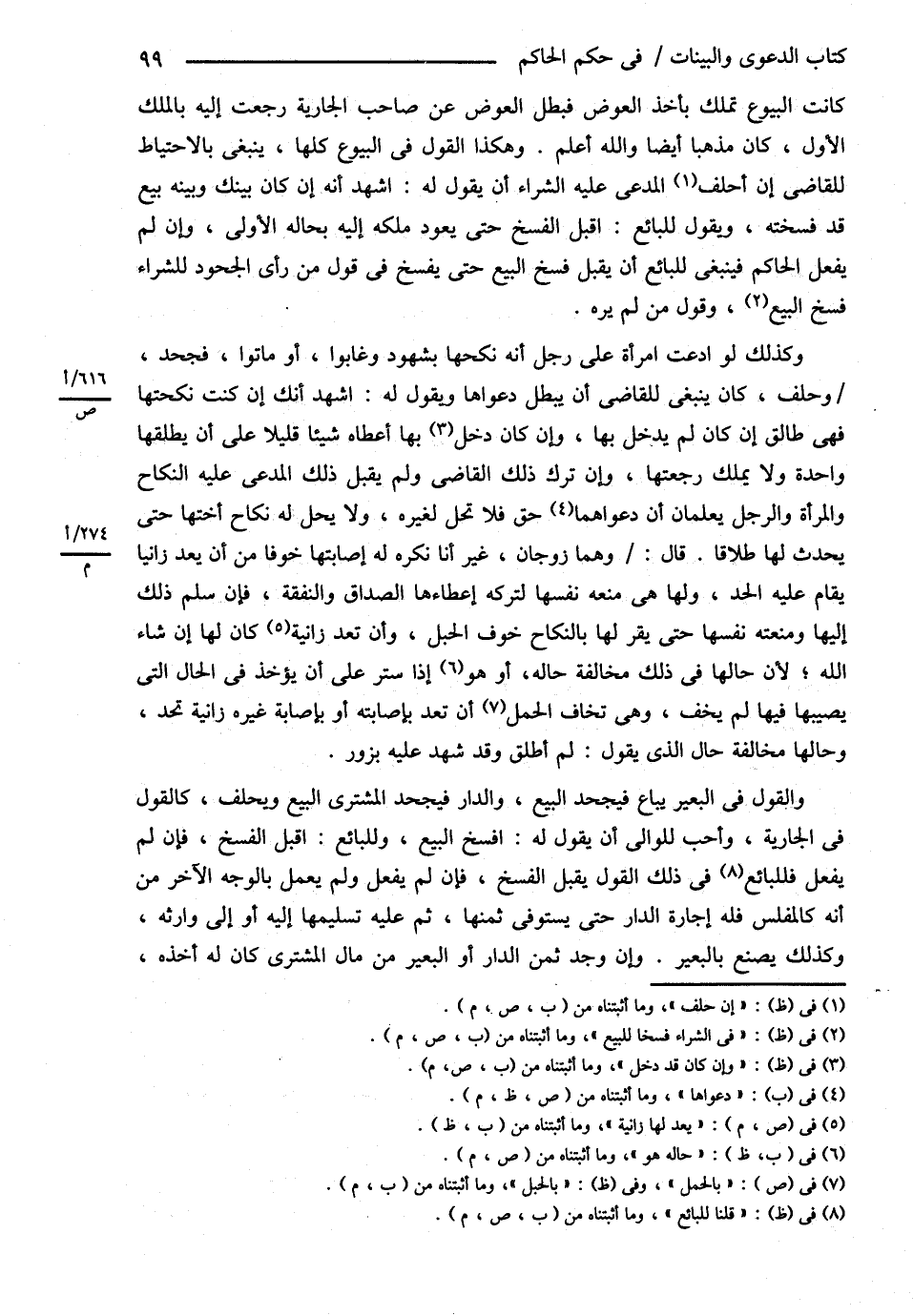 كَانَتْ الْبُيُوعُ تُمْلَكُ بِأَخْذِ الْعِوَضِ فَبَطَلَ الْعِوَضُ عَنْ صَاحِبِ الْجَارِيَةِ رَجَعَتْ إلَيْهِ بِالْمِلْكِ الْأَوَّلِ كَانَ مَذْهَبًا أَيْضًا وَاَللَّهُ تَعَالَى أَعْلَمُ وَهَكَذَا الْقَوْلُ فِي الْبُيُوعِ كُلِّهَا يَنْبَغِي بِالِاحْتِيَاطِ لِلْقَاضِي إنْ أَحْلَفَ الْمُدَّعَى عَلَيْهِ الشِّرَاءَ أَنْ يَقُولَ لَهُ أَشْهِدْ أَنَّهُ إنْ كَانَ بَيْنَك وَبَيْنَهُ بَيْعٌ فَقَدْ فَسَخْته وَيَقُولُ لِلْبَائِعِ اقْبَلْ الْفَسْخَ حَتَّى يَعُودَ مِلْكُهُ إلَيْهِ بِحَالِهِ الْأُولَى , وَإِنْ لَمْ يَفْعَلْ الْحَاكِمُ فَيَنْبَغِي لِلْبَائِعِ أَنْ يَقْبَلَ فَسْخَ الْبَيْعِ حَتَّى يُفْسَخَ فِي قَوْلِ مَنْ رَأَى الْجُحُودَ لِلشِّرَاءِ فَسْخَ الْبَيْعِ وَقَوْلِ مَنْ لَمْ يَرَهُ , وَكَذَلِكَ لَوْ ادَّعَتْ امْرَأَةٌ عَلَى رَجُلٍ أَنَّهُ نَكَحَهَا بِشُهُودٍ وَغَابُوا , أَوْ مَاتُوا فَجَحَدَ وَحَلَفَ كَانَ يَنْبَغِي لِلْقَاضِي أَنْ يُبْطِلَ دَعْوَاهَا وَيَقُولَ لَهُ أَشْهِدْ أَنَّك إنْ كُنْت نَكَحْتهَا فَهِيَ طَالِقٌ إنْ كَانَ لَمْ يَدْخُلْ بِهَا وَإِنْ كَانَ دَخَلَ بِهَا أَعْطَاهُ شَيْئًا قَلِيلاً عَلَى أَنْ يُطَلِّقَهَا وَاحِدَةً وَلاَ يَمْلِكُ رَجَعْتهَا . وَإِنْ تَرَكَ ذَلِكَ الْقَاضِي وَلَمْ يَقْبَلْ ذَلِكَ الْمُدَّعَى عَلَيْهِ النِّكَاحَ , وَالْمَرْأَةُ وَالرَّجُلُ يَعْلَمَانِ أَنَّ دَعْوَاهَا حَقٌّ فَلاَ تَحِلُّ لِغَيْرِهِ وَلاَ يَحِلُّ لَهُ نِكَاحُ أُخْتِهَا حَتَّى يُحْدِثَ لَهَا طَلاَقًا قَالَ وَهُمَا زَوْجَانِ غَيْرَ أَنَّا نَكْرَهُ لَهُ إصَابَتَهَا خَوْفًا مِنْ أَنْ يُعَدَّ زَانِيًا يُقَامُ عَلَيْهِ الْحَدُّ وَلَهَا هِيَ مَنْعُهُ نَفْسَهَا لِتَرْكِهِ إعْطَاءَهَا الصَّدَاقَ وَالنَّفَقَةَ فَإِنْ سَلَّمَ ذَلِكَ إلَيْهَا وَمَنَعَتْهُ نَفْسَهَا حَتَّى يُقِرَّ لَهَا بِالنِّكَاحِ خَوْفَ الْحَبَلِ وَأَنْ تُعَدَّ زَانِيَةً كَانَ لَهَا إنْ شَاءَ اللَّهُ تَعَالَى ; لِأَنَّ حَالَهَا فِي ذَلِكَ مُخَالِفَةٌ هُوَ إذَا سَتَرَ عَلَى أَنْ يُؤْخَذَ فِي الْحَالِ الَّتِي يُصِيبُهَا فِيهَا لَمْ يَخَفْ وَهِيَ تَخَافُ الْحَمْلَ أَنْ تُعَدَّ بِإِصَابَتِهِ , أَوْ بِإِصَابَةِ غَيْرِهِ زَانِيَةً تُحَدُّ وَحَالُهَا مُخَالِفَةٌ حَالَ الَّذِي يَقُولُ لَمْ أُطَلِّقْ , وَقَدْ شُهِدَ عَلَيْهِ بِزُورٍ , وَالْقَوْلُ فِي الْبَعِيرِ يُبَاعُ فَيَجْحَدُ الْبَيْعَ وَالدَّارِ فَيَجْحَدُ الْمُشْتَرِي الْبَيْعَ وَيَحْلِفُ كَالْقَوْلِ فِي الْجَارِيَةِ وَأُحِبُّ لِلْوَالِي أَنْ يَقُولَ لَهُ افْسَخْ الْبَيْعَ وَلِلْبَائِعِ اقْبَلْ الْفَسْخَ فَإِنْ لَمْ يَفْعَلْ فَلِلْبَائِعِ فِي ذَلِكَ الْقَوْلِ يَقْبَلُ الْفَسْخَ فَإِنْ لَمْ يَفْعَلْ وَلَمْ يَعْمَلْ بِالْوَجْهِ الْآخَرِ مِنْ أَنَّهُ كَالْمُفْلِسِ فَلَهُ إجَارَةُ الدَّارِ حَتَّى يَسْتَوْفِيَ ثَمَنَهَا , ثُمَّ عَلَيْهِ تَسْلِيمُهَا إلَيْهِ , أَوْ إلَى وَارِثِهِ , وَكَذَلِكَ يَصْنَعُ بِالْبَعِيرِ , وَإِنْ وَجَدَ ثَمَنَ الدَّارِ , أَوْ الْبَعِيرِ مِنْ مَالِ الْمُشْتَرِي كَانَ لَهُ أَخْذُهُ@