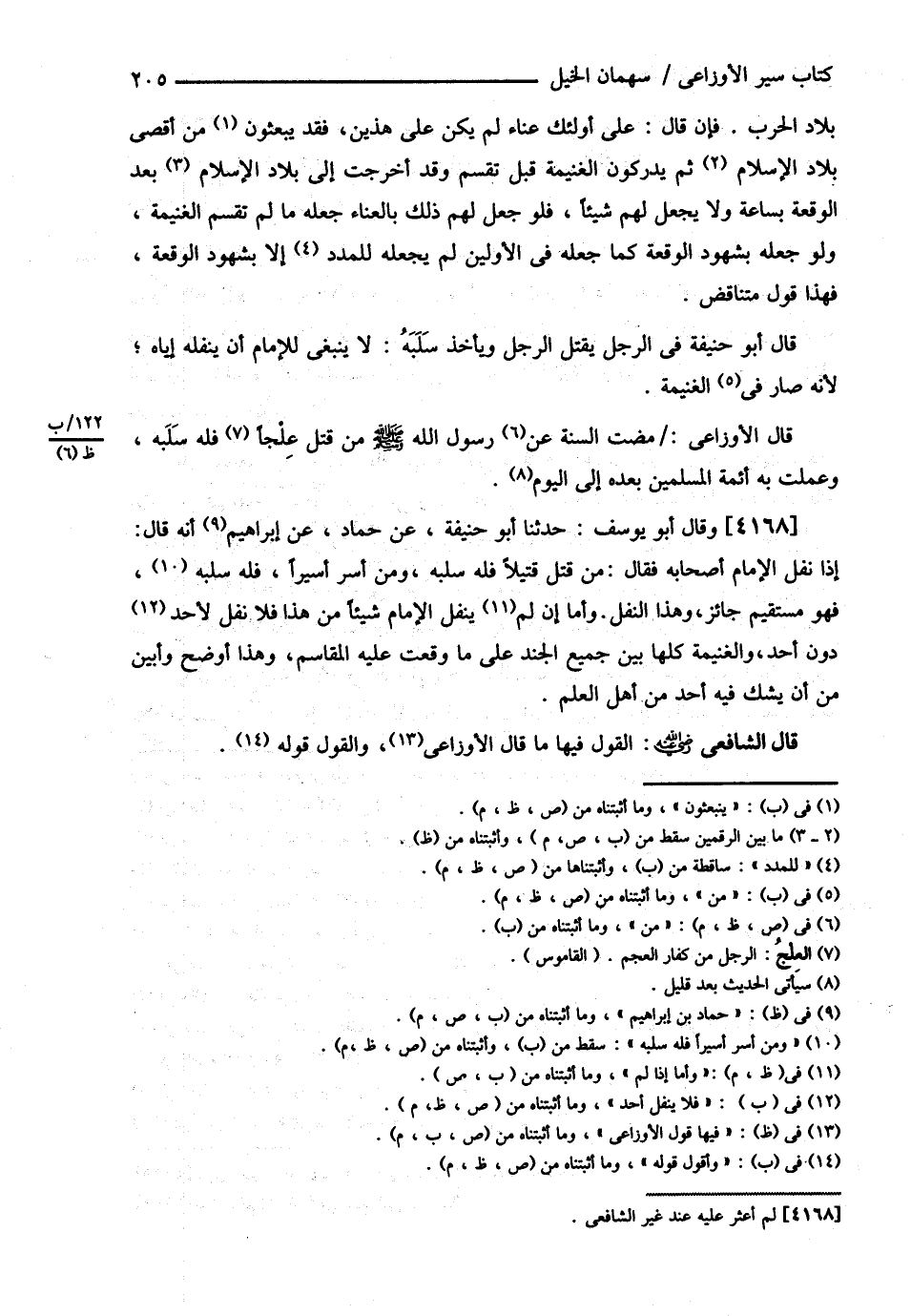 قَالَ الشَّافِعِيُّ : الْقَوْلُ فِيهَا مَا قَالَ الْأَوْزَاعِيُّ وَالقُولُ قَوْلَهُ .@