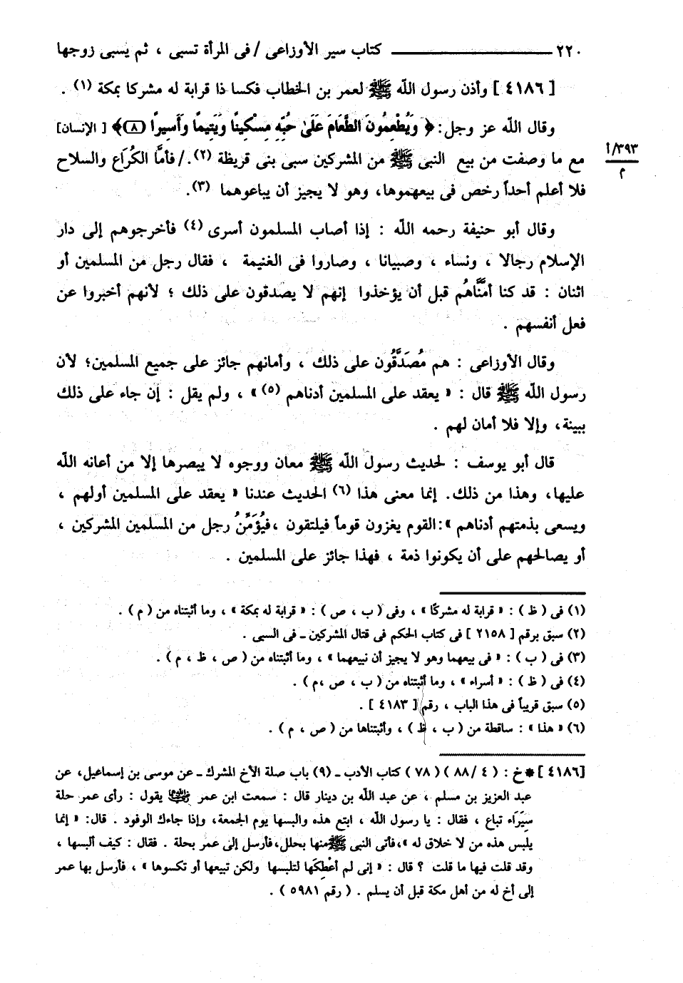 وَقَالَ أَبُو حَنِيفَةَ رحمه الله تعالى إذَا أَصَابَ الْمُسْلِمُونَ أَسْرَى فَأَخْرَجُوهُمْ إلَى دَارِ الْإِسْلاَمِ رِجَالاً وَنِسَاءً وَصِبْيَانًا وَصَارُوا فِي الْغَنِيمَةِ فَقَالَ رَجُلٌ مِنْ الْمُسْلِمِينَ أَوْ اثْنَانِ قَدْ كُنَّا أَمَّنَّاهُمْ قَبْلَ أَنْ يُؤْخَذُوا أَنَّهُمْ لاَ يُصَدَّقُونَ عَلَى ذَلِكَ لِأَنَّهُمْ أَخْبَرُوا عَنْ فِعْلِ أَنْفُسِهِمْ وَقَالَ الْأَوْزَاعِيُّ هُمْ مُصَدَّقُونَ عَلَى ذَلِكَ وَأَمَانُهُمْ جَائِزٌ عَلَى جَمِيعِ الْمُسْلِمِينَ لِأَنَّ رَسُولَ اللَّهِ - صلى الله عليه وسلم - قَالَ : ? يَعْقِدُ عَلَى الْمُسْلِمِينَ أَدْنَاهُمْ ? وَلَمْ يَقُلْ إنْ جَاءَ عَلَى ذَلِكَ بِبَيِّنَةٍ وَإِلَّا فَلاَ أَمَانَ لَهُمْ قَالَ أَبُو يُوسُفَ لِحَدِيثِ رَسُولِ اللَّهِ - صلى الله عليه وسلم - مَعَانٍ وَوُجُوهٌ لاَ يُبْصِرُهَا إلَّا مَنْ أَعَانَهُ اللَّهُ تَعَالَى عَلَيْهَا وَهَذَا مِنْ ذَلِكَ إنَّمَا مَعْنَى الْحَدِيثِ عِنْدَنَا يَعْقِدُ عَلَى الْمُسْلِمِينَ أَوَّلُهُمْ وَيَسْعَى بِذِمَّتِهِمْ أَدْنَاهُمْ الْقَوْمُ يَغْزُونَ قَوْمًا فَيَلْتَقُونَ فَيُؤَمِّنُ رَجُلٌ مِنْ الْمُسْلِمِينَ الْمُشْرِكِينَ أَوْ يُصَالِحُهُمْ عَلَى أَنْ يَكُونُوا ذِمَّةً فَهَذَا جَائِزٌ عَلَى الْمُسْلِمِينَ@