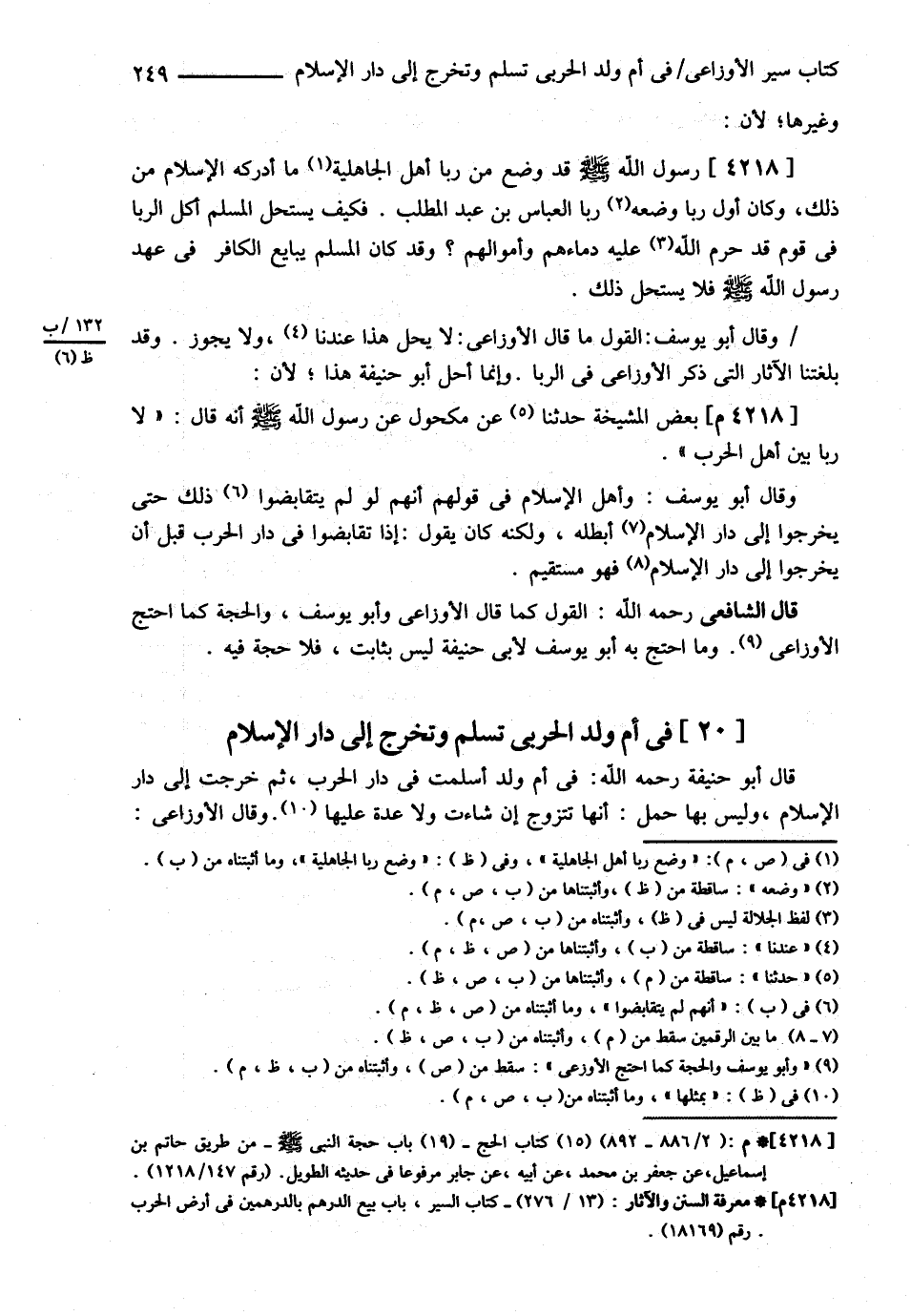 وَغَيْرِهَا لِأَنَّ رَسُولَ اللَّهِ - صلى الله عليه وسلم - قَدْ وَضَعَ مِنْ رِبَا أَهْلِ الْجَاهِلِيَّةِ مَا أَدْرَكَهُ الْإِسْلاَمُ مِنْ ذَلِكَ وَكَانَ أَوَّلُ رِبًا وَضَعَهُ رِبَا الْعَبَّاسِ بْنِ عَبْدِ الْمُطَّلِبِ فَكَيْفَ يَسْتَحِلُّ الْمُسْلِمُ أَكْلَ الرِّبَا فِي قَوْمٍ قَدْ حَرَّمَ اللَّهُ تَعَالَى عَلَيْهِ دِمَاءَهُمْ وَأَمْوَالَهُمْ ؟ وَقَدْ كَانَ الْمُسْلِمُ يُبَايِعُ الْكَافِرَ فِي عَهْدِ رَسُولِ اللَّهِ - صلى الله عليه وسلم - فَلاَ يَسْتَحِلُّ ذَلِكَ وَقَالَ أَبُو يُوسُفَ الْقَوْلُ مَا قَالَ الْأَوْزَاعِيُّ لاَ يَحِلُّ هَذَا وَلاَ يَجُوزُ وَقَدْ بَلَغَتْنَا الْآثَارُ الَّتِي ذَكَرَ الْأَوْزَاعِيُّ فِي الرِّبَا وَإِنَّمَا أَحَلَّ أَبُو حَنِيفَةَ هَذَا لِأَنَّ بَعْضَ الْمَشْيَخَةِ حَدَّثَنَا عَنْ مَكْحُولٍ عَنْ رَسُولِ اللَّهِ - صلى الله عليه وسلم - أَنَّهُ قَالَ : ? لاَ رِبَا بَيْنَ أَهْلِ الْحَرْبِ ? وَقَالَ أَبُو يُوسُفَ وَأَهْلُ الْإِسْلاَمِ فِي قَوْلِهِمْ أَنَّهُمْ لَمْ يَتَقَابَضُوا ذَلِكَ حَتَّى يَخْرُجُوا إلَى دَارِ الْإِسْلاَمِ أَبْطَلَهُ وَلَكِنَّهُ كَانَ يَقُولُ إذَا تَقَابَضُوا فِي دَارِ الْحَرْبِ قَبْلَ أَنْ يَخْرُجُوا إلَى دَارِ الْإِسْلاَمِ فَهُوَ مُسْتَقِيمٌ .