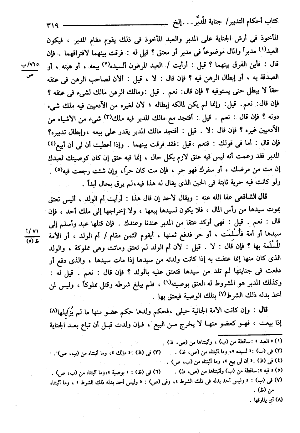 قَالَ الشَّافِعِيُّ : : وَيُقَالُ لِأَحَدٍ : إنْ قَالَ : هَذَا أَرَأَيْت أُمَّ الْوَلَدِ أَلَيْسَ تَعْتِقُ بِمَوْتِ سَيِّدِهَا مِنْ رَأْسِ الْمَالِ فَلاَ يَكُونُ لِسَيِّدِهَا بَيْعُهَا وَلاَ إخْرَاجُهَا إلَى مِلْكِ أَحَدٍ ؟ فَإِنْ قَالَ : نَعَمْ , قِيلَ : فَهِيَ أَوْكَدُ عِتْقًا مِنْ الْمُدَبَّرِ عِنْدَنَا وَعِنْدَك , فَإِنْ قَتَلَهَا عَبْدٌ وَأَسْلَمَ إلَى سَيِّدِهَا , أَوْ أَمَةٌ فَأَسْلَمَتْ أَوْ حُرٌّ فَدَفَعَ ثَمَنُهَا أَيَقُومُ الثَّمَنُ مَقَامَ أُمِّ الْوَلَدِ , أَوْ الْأَمَةِ الْمُسْلِمَةِ بِهَا ؟ فَإِنْ قَالَ : لاَ , قِيلَ : لِأَنَّ أُمَّ الْوَلَدِ لَمْ تَعْتِقْ وَمَاتَتْ وَهِيَ مَمْلُوكَةٌ , وَالْوَلَدُ الَّذِي كَانَ مِنْهَا إنَّمَا عَتَقْت بِهِ إذَا كَانَتْ وَلَدَتْهُ مِنْ سَيِّدِهَا إذَا مَاتَ سَيِّدُهَا وَاَلَّذِي دَفَعَ أَوْ دَفَعَتْ فِي جِنَايَتِهَا لَمْ تَلِدْ مِنْ سَيِّدِهَا فَتَعْتِقُ عَلَيْهِ بِالْوَلَدِ ؟ فَإِنْ قَالَ : نَعَمْ , قِيلَ : لَهُ , وَكَذَلِكَ الْمُدَبَّرُ هُوَ الْمَشْرُوطُ لَهُ الْعِتْقُ بِوَصِيَّتِهِ فَلَمْ يَبْلُغْ شَرْطُهُ وَقُتِلَ مَمْلُوكًا وَلَيْسَ أَحَدٌ بَدَلَهُ فِي ذَلِكَ الشَّرْطِ بِتِلْكَ الْوَصِيَّةِ فَيَعْتِقُ بِهَا , ( قَالَ ) : وَإِنْ كَانَتْ الْأَمَةُ الْجَانِيَةُ حُبْلَى فَحُكْمُ وَلَدِهَا حُكْمُ عُضْوٍ مِنْهَا مَا لَمْ يُزَايِلُهَا إذَا بِيعَتْ , فَهُوَ كَعُضْوٍ مِنْهَا لاَ يَخْرُجُ مِنْ الْبَيْعِ , فَإِنْ وَلَدْنَ قَبْلَ أَنْ تُبَاعَ بَعْدَ الْجِنَايَةِ@