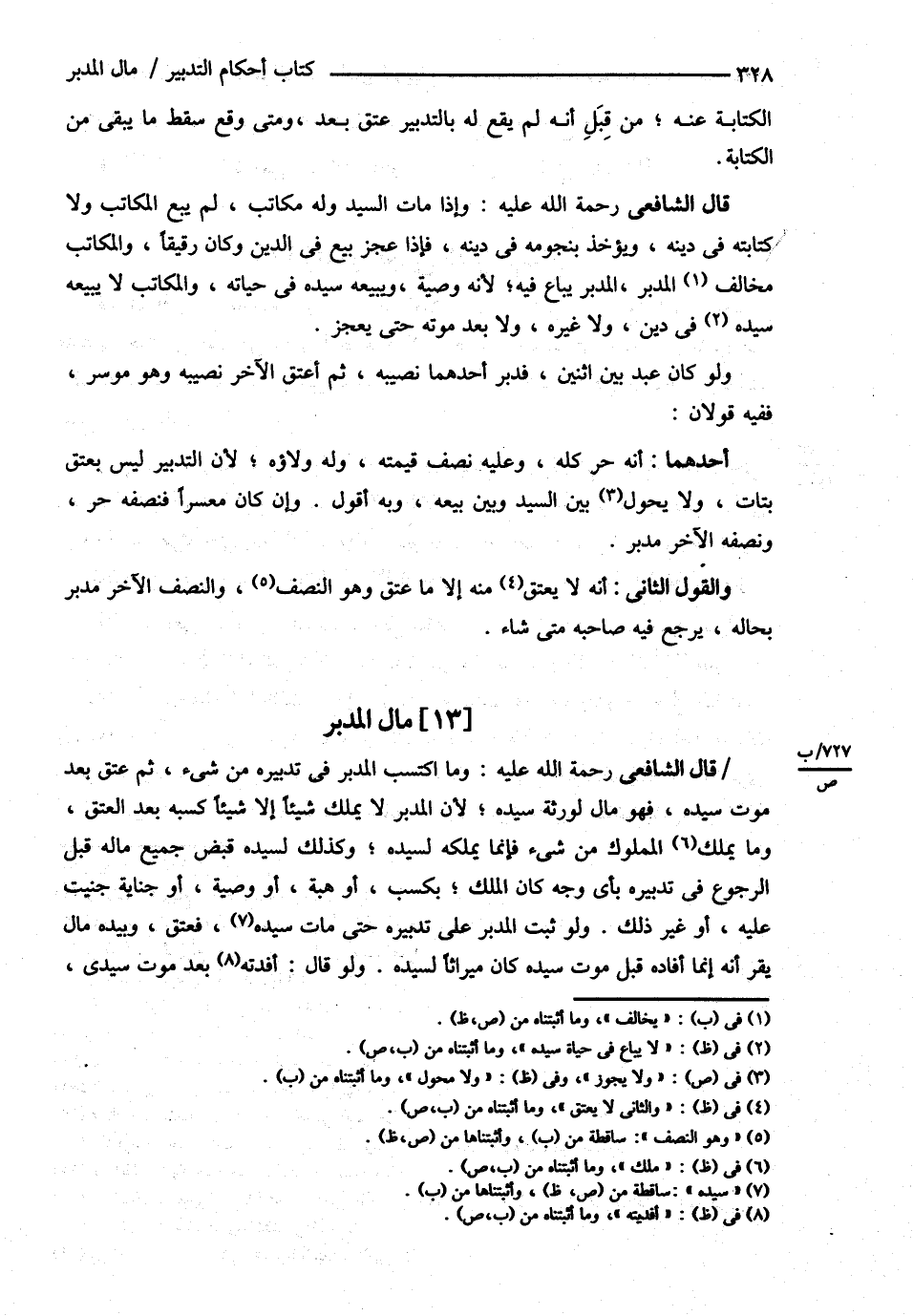 قَالَ الشَّافِعِيُّ : : رضي الله تعالى عنه وَإِذَا مَاتَ السَّيِّدُ وَلَهُ مُكَاتَبٌ لَمْ يُبَعْ الْمُكَاتَبُ وَلاَ كِتَابَتَهُ فِي دَيْنِهِ وَيُؤْخَذُ بِنُجُومِهِ فِي دَيْنِهِ , فَإِذَا عَجَزَ بِيعَ فِي الدَّيْنِ وَكَانَ رَقِيقًا , وَالْمُكَاتَبُ يُخَالِفُ الْمُدَبَّرَ , الْمُدَبَّرُ يُبَاعُ فِيهِ ; لِأَنَّهُ وَصِيَّةٌ وَيَبِيعُهُ سَيِّدُهُ فِي حَيَاتِهِ وَالْمُكَاتَبُ لاَ يَبِيعُهُ سَيِّدُهُ فِي دَيْنٍ وَلاَ غَيْرِهِ وَلاَ بَعْدَ مَوْتِهِ حَتَّى يَعْجَزَ , وَلَوْ كَانَ عَبْدٌ بَيْنَ اثْنَيْنِ فَدَبَّرَ أَحَدُهُمَا نَصِيبَهُ , ثُمَّ أَعْتَقَ الْآخَرُ نَصِيبَهُ وَهُوَ مُوسِرٌ فَفِيهِ قَوْلاَنِ : أَحَدُهُمَا : أَنَّهُ حُرٌّ كُلُّهُ وَعَلَيْهِ نِصْفُ قِيمَتِهِ وَلَهُ وَلاَؤُهُ ; لِأَنَّ التَّدْبِيرَ لَيْسَ بِعِتْقِ بَتَاتٍ وَلاَ يَحُولُ بَيْنَ السَّيِّدِ وَبَيْنَ بَيْعِهِ , وَبِهِ أَقُولُ , وَإِنْ كَانَ مُعْسِرًا فَنِصْفُهُ حُرٌّ وَنِصْفُهُ الْآخَرُ مُدَبَّرٌ , وَالْقَوْلُ الثَّانِي : أَنَّهُ لاَ يَعْتِقُ مِنْهُ إلَّا مَا عَتَقَ وَالنِّصْفُ الْآخَرُ مُدَبَّرٌ بِحَالِهِ يَرْجِعُ فِيهِ صَاحِبُهُ مَتَى شَاءَ .