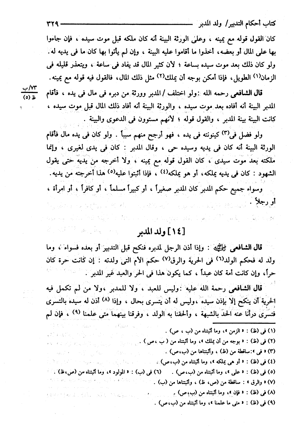 قَالَ الشَّافِعِيُّ : : وَلَوْ اخْتَلَفَ الْمُدَبَّرُ وَوَرَثَةُ مَنْ دَبَّرَهُ فِي مَالٍ فِي يَدِهِ , فَأَقَامَ الْمُدَبَّرُ الْبَيِّنَةَ أَنَّهُ أَفَادَهُ بَعْدَ مَوْتِ سَيِّدِهِ , وَالْوَرَثَةُ الْبَيِّنَةَ أَنَّهُ أَفَادَ ذَلِكَ الْمَالَ قَبْلَ مَوْتِ سَيِّدِهِ كَانَتْ الْبَيِّنَةُ بَيِّنَةَ الْمُدَبَّرِ وَالْقَوْلُ قَوْلَهُ لِأَنَّهُمْ مُسْتَوُونَ فِي الدَّعْوَى وَالْبَيِّنَةِ , وَلَوْ فَضَلَ فِي كَيْنُونَتِهِ فِي يَدِهِ فَهُوَ أَرْجَحُ مِنْهُمْ سَبَبًا , وَلَوْ كَانَ فِي يَدِهِ مَالٌ فَأَقَامَ الْوَرَثَةُ الْبَيِّنَةَ أَنَّهُ كَانَ فِي يَدَيْهِ وَسَيِّدُهُ حَيٌّ , وَقَالَ الْمُدَبَّرُ : كَانَ فِي يَدَيْ لِغَيْرِي وَإِنَّمَا مَلَكْته بَعْدَ مَوْتِ سَيِّدِي كَانَ الْقَوْلُ قَوْلَهُ مَعَ يَمِينِهِ وَلاَ أُخْرِجُهُ مِنْ يَدَيْهِ حَتَّى يَقُولَ الشُّهُودُ : كَانَ فِي يَدَيْهِ يَمْلِكُهُ , أَوْ هُوَ يَمْلِكُهُ , فَإِذَا أَثْبَتُوا عَلَيْهِ هَذَا أَخْرَجْته مِنْ يَدَيْهِ , وَسَوَاءٌ جَمِيعُ حُكْمِ الْمُدَبَّرِ كَانَ الْمُدَبَّرُ صَغِيرًا أَوْ كَبِيرًا مُسْلِمًا , أَوْ كَافِرًا , أَوْ امْرَأَةً , أَوْ رَجُلاً . .