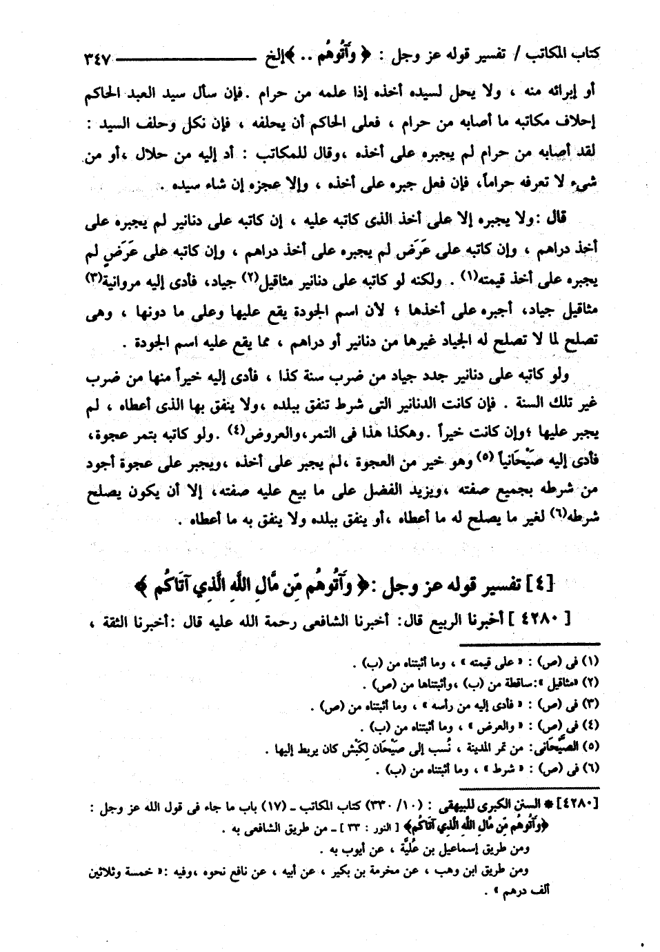 تَفْسِيرُ قَوْلِهِ عَزَّ وَجَلَّ : ? وَآتُوهُمْ مِنْ مَالِ اللَّهِ الَّذِي آتَاكُمْ ? أَخْبَرَنَا الرَّبِيعُ قَالَ : أَخْبَرَنَا الشَّافِعِيُّ رضي الله تعالى عنه قَالَ : أَخْبَرَنَا الثِّقَةُ @