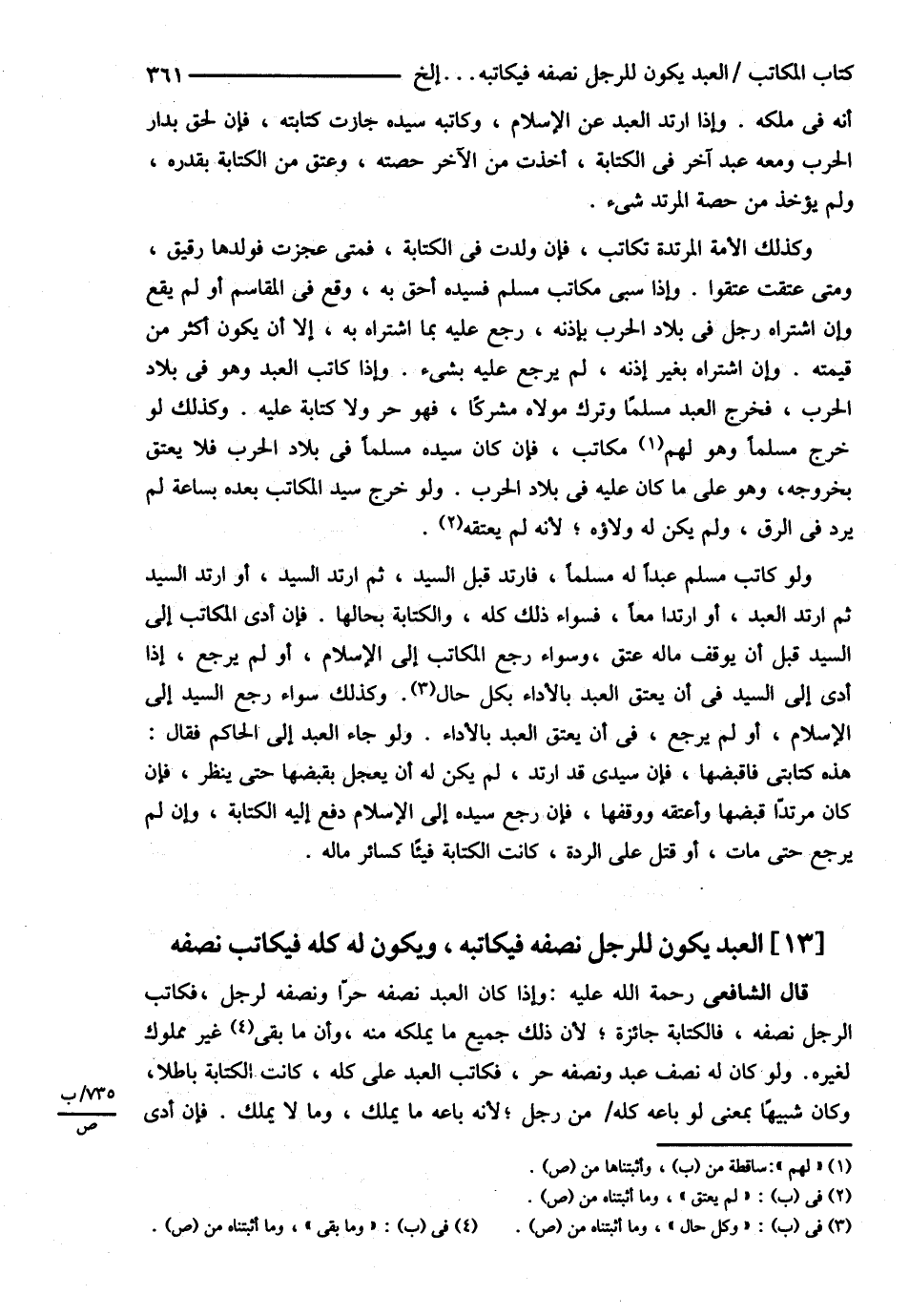 قَالَ الشَّافِعِيُّ : : رضي الله تعالى عنه : وَإِذَا كَانَ الْعَبْدُ نِصْفُهُ حُرٌّ وَنِصْفُهُ لِرَجُلٍ فَكَاتَبَ الرَّجُلُ نِصْفَهُ فَالْكِتَابَةُ جَائِزَةٌ ; لِأَنَّ ذَلِكَ جَمِيعُ مَا يَمْلِكُهُ مِنْهُ وَمَا بَقِيَ مَمْلُوكٌ لِغَيْرِهِ وَلَوْ كَانَ لَهُ نِصْفُ عَبْدٍ . وَنِصْفُهُ حُرٌّ فَكَاتَبَ الْعَبْدَ عَلَى كُلِّهِ كَانَتْ الْكِتَابَةُ بَاطِلَةٌ وَكَانَ شَبِيهًا بِمَعْنَى لَوْ بَاعَهُ كُلَّهُ مِنْ رَجُلٍ ; لِأَنَّهُ بَاعَهُ مَا يَمْلِكُ وَمَا لاَ يَمْلِكُ , فَإِنْ أَدَّى@