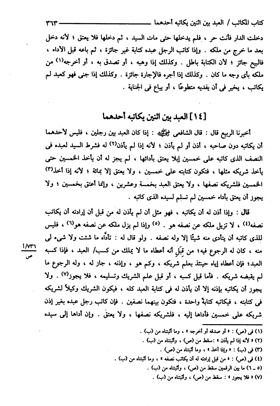 الْعَبْدُ بَيْنَ اثْنَيْنِ يُكَاتِبُهُ أَحَدُهُمَا ( أَخْبَرَنَا الرَّبِيعُ ) قَالَ :