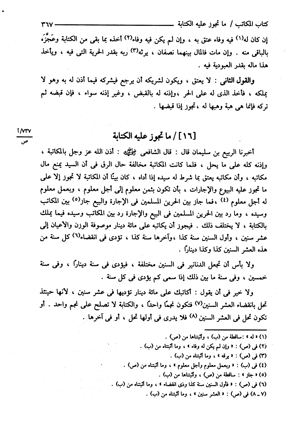مَا تَجُوزُ عَلَيْهِ الْكِتَابَةُ أَخْبَرَنَا الرَّبِيعُ بْنُ سُلَيْمَانَ قَالَ :