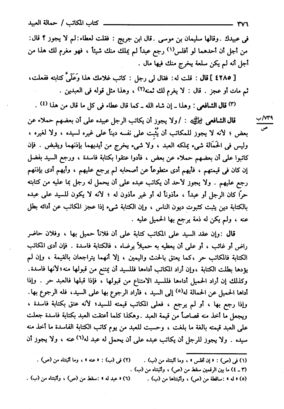 فِي عَبِيدك وَقَالَهَا سُلَيْمَانُ بْنُ مُوسَى قَالَ ابْنُ جُرَيْجٍ فَقُلْت لِعَطَاءٍ لِمَ لاَ يَجُوزُ ؟ قَالَ : مِنْ أَجْلِ أَنَّ أَحَدَهُمَا لَوْ أَفْلَسَ رَجَعَ عَبْدًا لَمْ يَمْلِكْ مِنْك شَيْئًا فَهُوَ مَغْرَمٌ لَكَ , هَذَا مِنْ أَجْلِ أَنَّهُ لَمْ يَكُنْ سِلْعَةً يَخْرُجُ مِنْكَ فِيهَا مَالٌ قَالَ : قُلْت لَهُ : فَقَالَ لِي رَجُلٌ : كَاتِبْ غُلاَمَك هَذَا وَعَلَيَّ كِتَابَتُهُ فَفَعَلَتْ , ثُمَّ مَاتَ , أَوْ عَجَزَ قَالَ : لاَ يَغْرَمُ لَك عَنْهُ . وَهَذَا مِثْلُ قَوْلِهِ فِي الْعَبْدَيْنِ