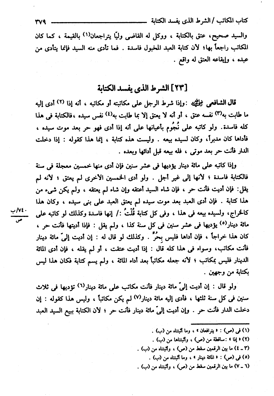 قَالَ الشَّافِعِيُّ : : رحمه الله تعالى وَإِذَا شَرَطَ الرَّجُلُ عَلَى مُكَاتَبَتِهِ , أَوْ مُكَاتَبِهِ أَنَّهُ إذَا أَدَّى إلَيْهِ مَا طَابَتْ بِهِ نَفْسُهُ عَتَقَ أَوْ أَنَّهُ لاَ يَعْتِقُ إلَّا بِمَا طَابَتْ بِهِ فِي نَفْسِ سَيِّدِهِ , فَالْكِتَابَةُ فِي هَذَا كُلِّهِ فَاسِدَةٌ وَلَوْ كَاتَبَهُ عَلَى نُجُومٍ بِأَعْيَانِهَا عَلَى أَنَّهُ إذَا أَدَّى فَهُوَ حُرٌّ بَعْدَ مَوْتِ سَيِّدِهِ فَأَدَّاهَا كَانَ مُدَبَّرًا , وَكَانَ لِسَيِّدِهِ بَيْعُهُ وَلَيْسَتْ هَذِهِ كِتَابَةً إنَّمَا هَذَا كَقَوْلِهِ : إذَا دَخَلْت الدَّارَ فَأَنْتَ حُرٌّ بَعْدَ مَوْتِي فَلَهُ بَيْعُهُ قَبْلَ أَدَائِهَا وَبَعْدَهُ , وَإِذَا كَاتَبَهُ عَلَى مِائَةِ دِينَارٍ يُؤَدِّيهَا فِي عَشْرِ سِنِينَ فَإِنْ أَدَّى مِنْهَا خَمْسِينَ مُعَجَّلَةً فِي سَنَةٍ , فَالْكِتَابَةُ فَاسِدَةٌ لِأَنَّهُ إلَى غَيْرِ أَجَلٍ وَلَوْ أَدَّى الْخَمْسِينَ الْأُخْرَى لَمْ يَعْتِقْ ; لِأَنَّهُ لَمْ يَقُلْ : فَإِنْ أَدَّيْت فَأَنْتَ حُرٌّ , فَإِنْ شَاءَ السَّيِّدُ أَعْتَقَهُ وَإِنْ شَاءَ لَمْ يُعْتِقْهُ , وَلَمْ يَكُنْ شَيْءٌ مِنْ هَذَا كِتَابَةً , فَإِنْ أَدَّى الْعَبْدُ بَعْدَ مَوْتِ سَيِّدِهِ لَمْ يَعْتِقْ الْعَبْدُ عَلَى بَنِي سَيِّدِهِ , وَكَانَ هَذَا كَالْخَرَاجِ , وَلِسَيِّدِهِ بَيْعُهُ فِي هَذَا وَفِي كُلِّ كِتَابَةٍ قُلْت : إنَّهَا فَاسِدَةً , وَكَذَلِكَ لَوْ كَاتَبَهُ عَلَى مِائَةِ دِينَارٍ يُؤَدِّيهَا فِي عَشْرِ سِنِينَ فِي كُلِّ سَنَةٍ كَذَا وَلَمْ يَقُلْ فَإِذَا أَدَّيْتهَا فَأَنْتَ حُرٌّ كَانَ هَذَا خَرَاجًا , فَإِنْ أَدَّاهَا فَلَيْسَ بِحُرٍّ , وَكَذَلِكَ لَوْ قَالَ لَهُ : إنْ أَدَّيْت إلَيَّ مِائَةَ دِينَارٍ فَأَنْتَ مُكَاتَبٌ , وَسَوَاءٌ فِي هَذَا كُلِّهِ قَالَ : إذَا أَدَّيْت عَتَقْت , أَوْ لَمْ يَقُلْهُ , فَإِنْ أَدَّى الْمِائَةَ الدِّينَارِ فَلَيْسَ بِمُكَاتَبٍ لِأَنَّهُ جَعَلَهُ مُكَاتَبًا بَعْدَ أَدَاءِ الْمِائَةِ وَلَمْ يُسَمِّ كِتَابَةً فَكَانَ هَذَا لَيْسَ بِكِتَابَةٍ مِنْ وَجْهَيْنِ , وَلَوْ قَالَ : إنْ أَدَّيْت إلَيَّ مِائَةَ دِينَارٍ فَأَنْتَ مُكَاتَبٌ عَلَى مِائَةِ دِينَارٍ تُؤَدِّيهَا فِي ثَلاَثِ سِنِينَ فِي كُلِّ سَنَةٍ ثُلُثُهَا فَأَدَّى إلَيْهِ مِائَةَ دِينَارٍ لَمْ يَكُنْ مُكَاتَبًا وَلَيْسَ هَذَا كَقَوْلِهِ : إنْ دَخَلْتُ الدَّارَ فَأَنْتَ حُرٌّ , وَإِنْ أَدَّيْت إلَيَّ مِائَةَ دِينَارٍ فَأَنْتَ حُرٌّ ; لِأَنَّ الْكِتَابَةَ بِبَيْعِ السَّيِّدِ الْعَبْدَ@